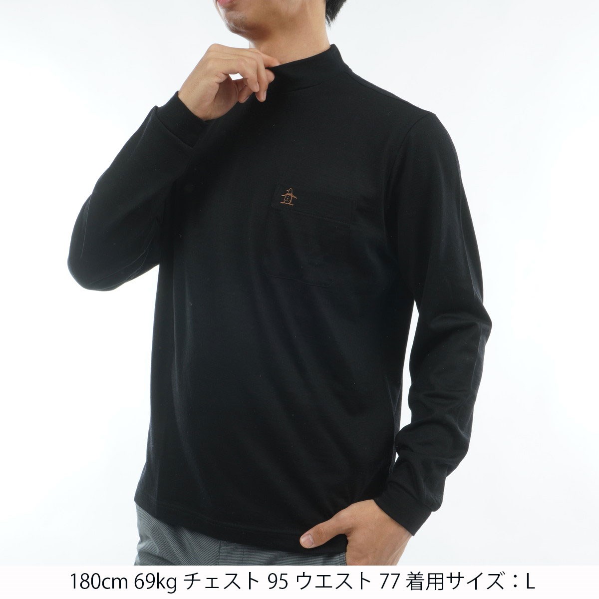 マンシングウェア Munsingwear ハイゲージウールモックネック長袖シャツ L ブラック 00