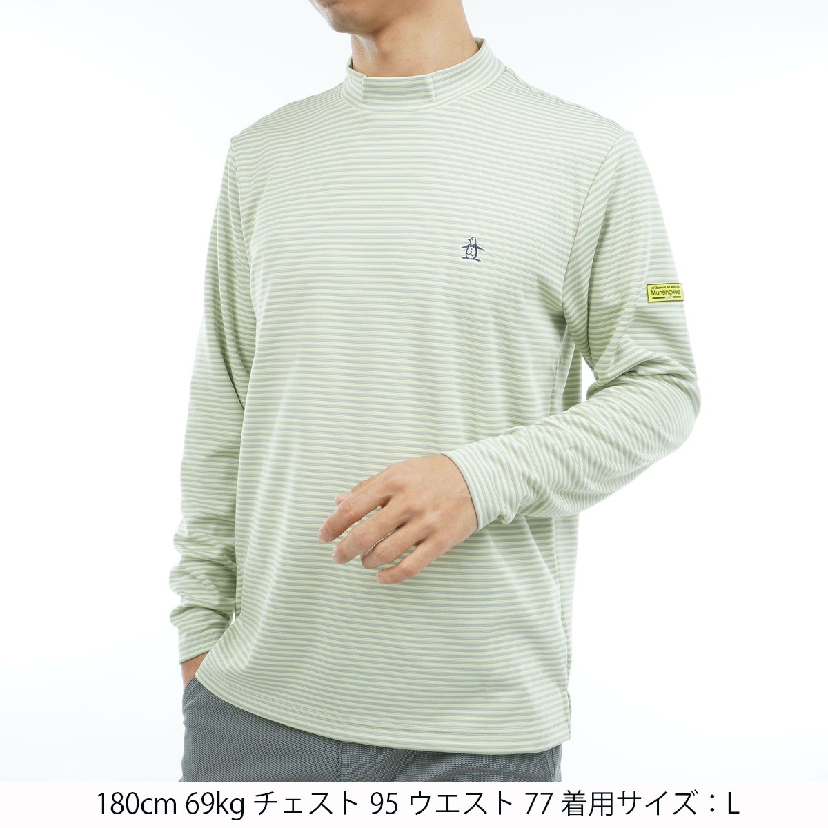 マンシングウェア Munsingwear ストレッチ ボーダーモックネック長袖シャツ L ライム 00