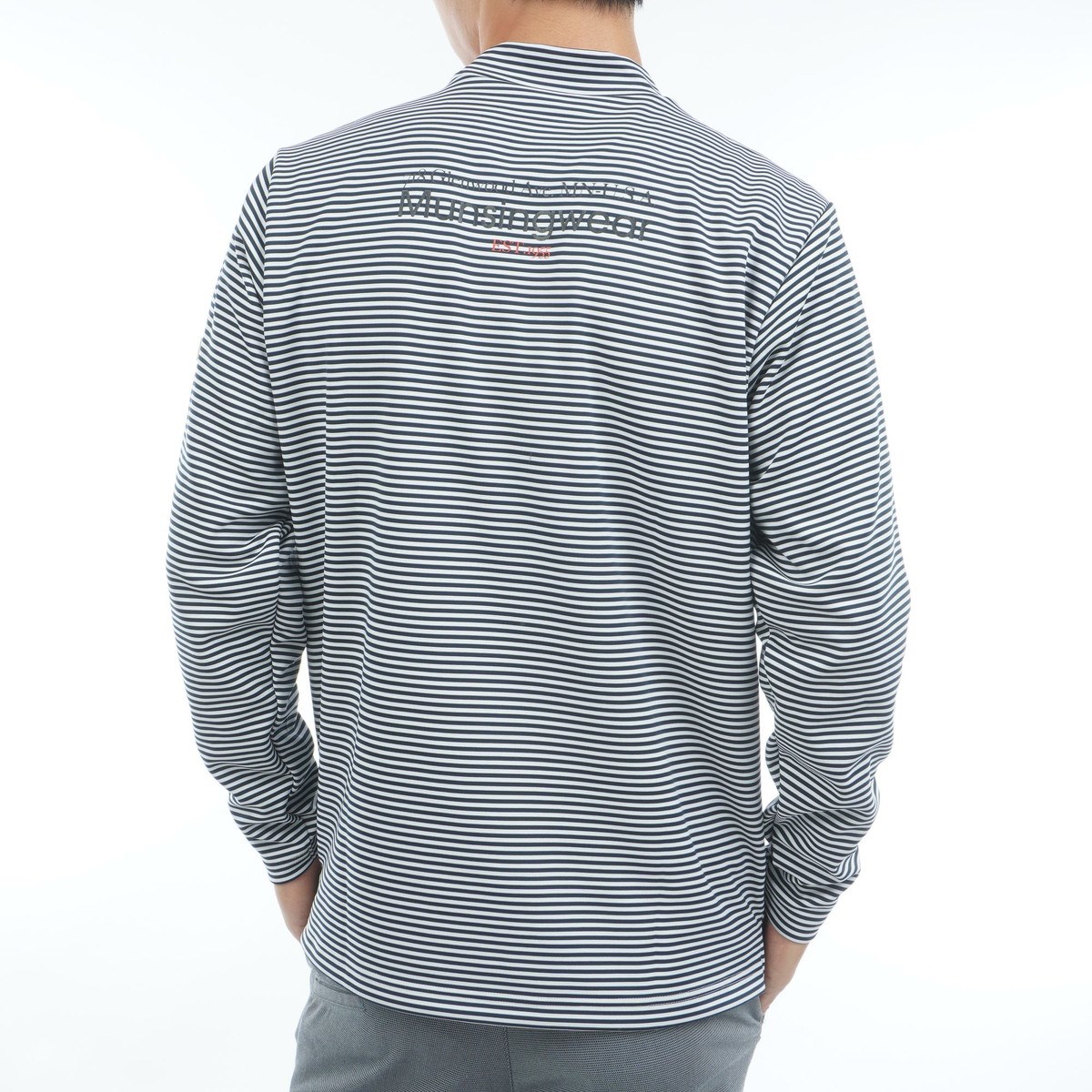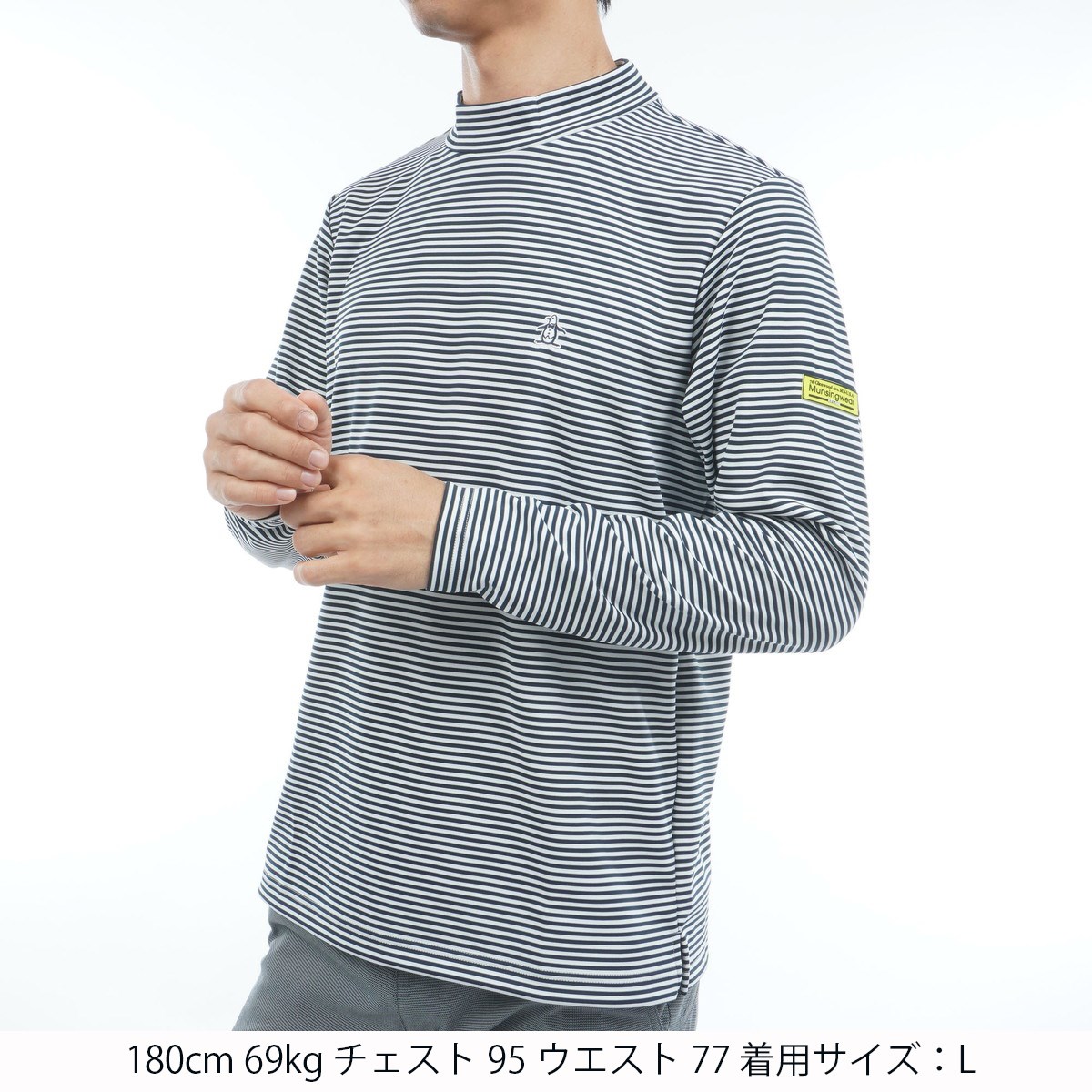 マンシングウェア Munsingwear ストレッチ ボーダーモックネック長袖シャツ M ネイビー 00