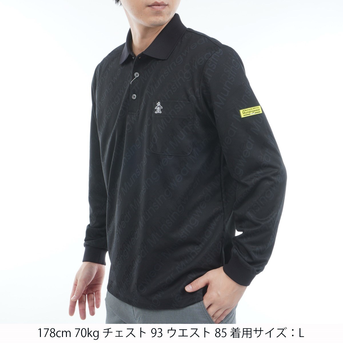 マンシングウェア Munsingwear ストレッチ ロゴジャカード長袖ポロシャツ M ブラック 00