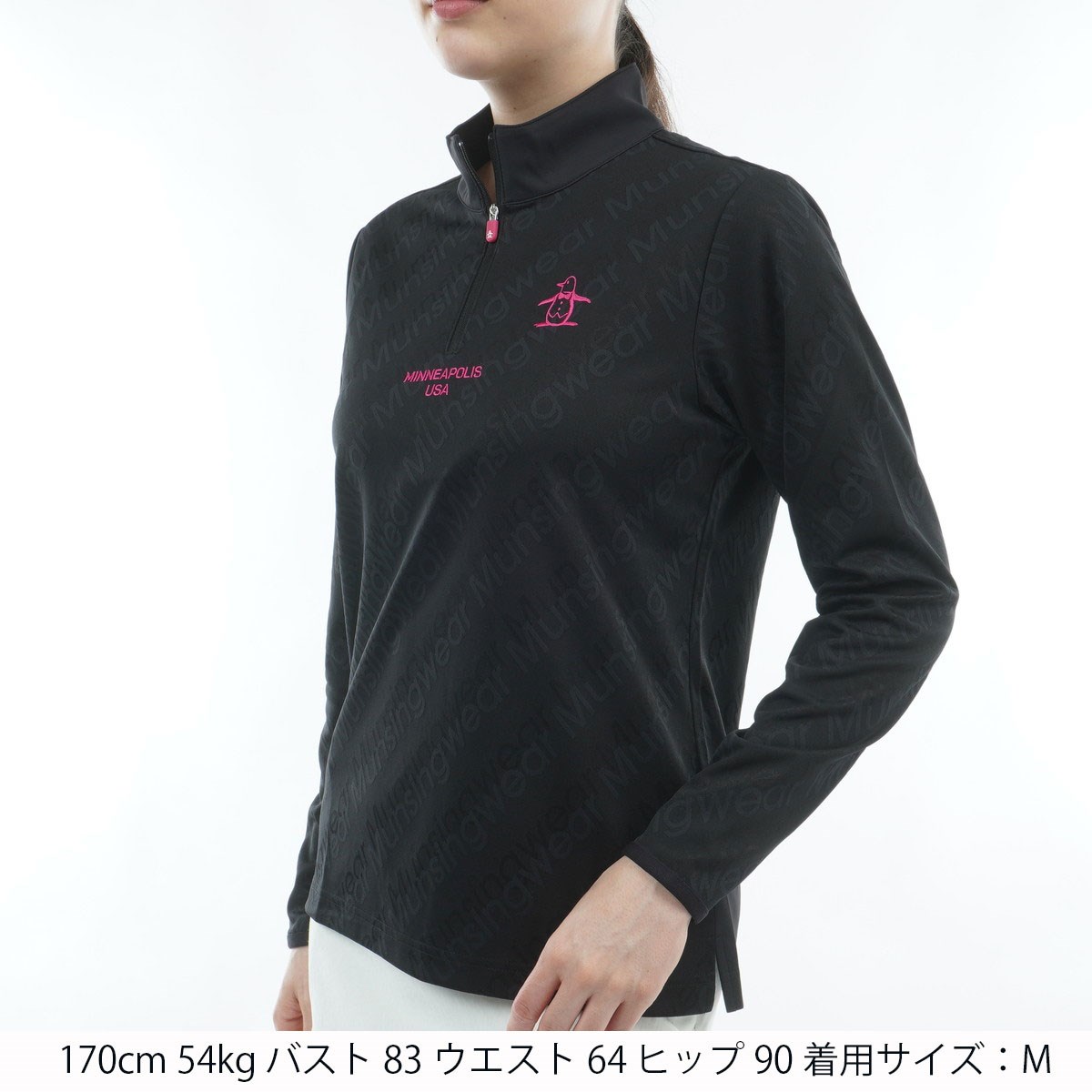 マンシングウェア Munsingwear ストレッチ ロゴジャカードハーフジップ長袖シャツ LL ブラック 00 レディス