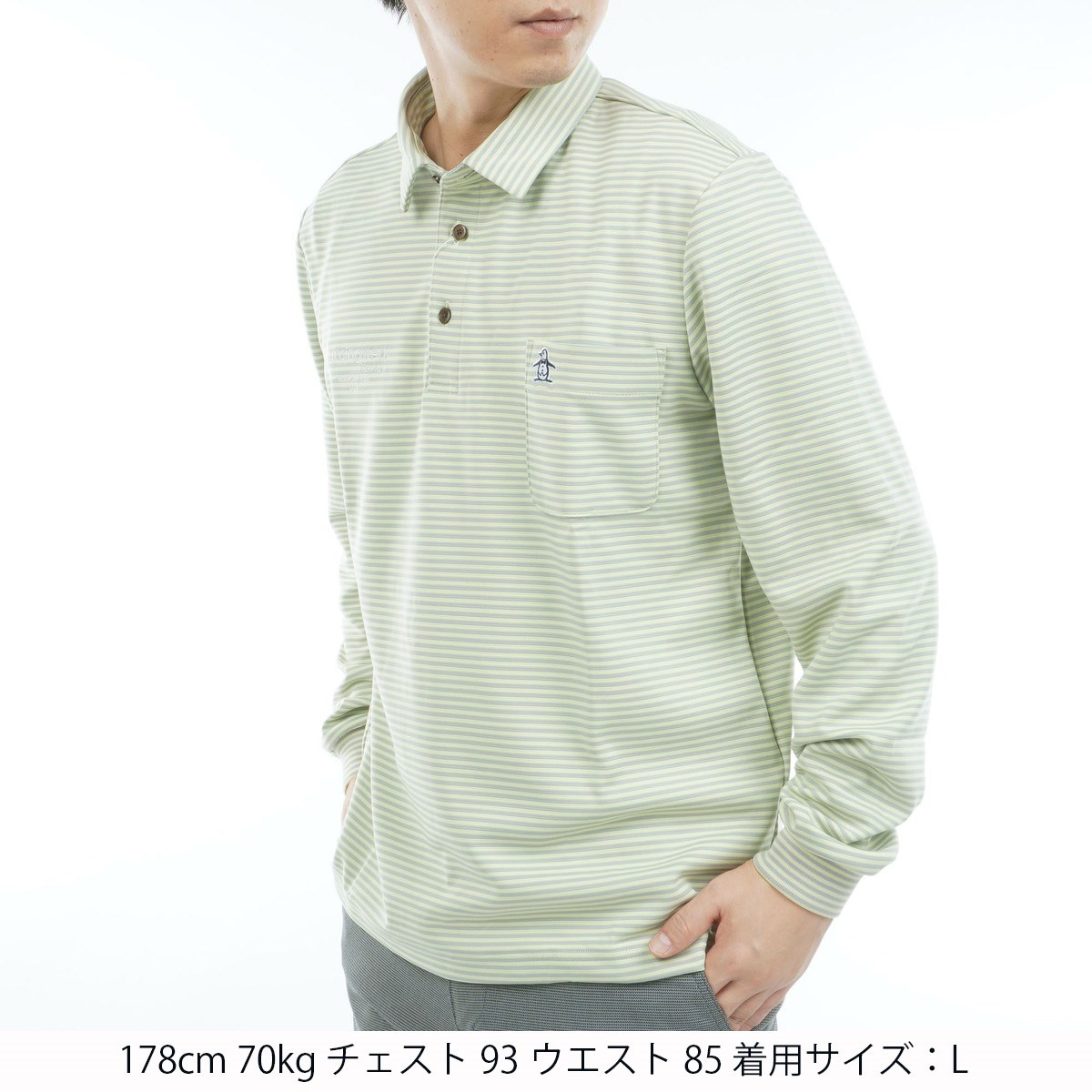 マンシングウェア Munsingwear ストレッチ ボーダー台衿付き長袖ポロシャツ 3L ライム 00