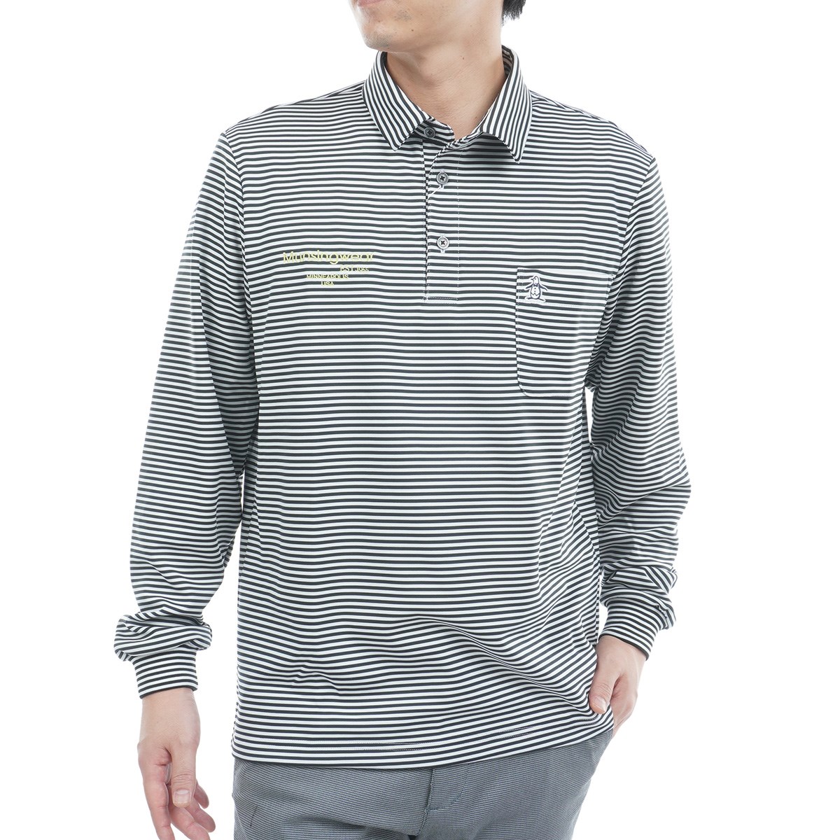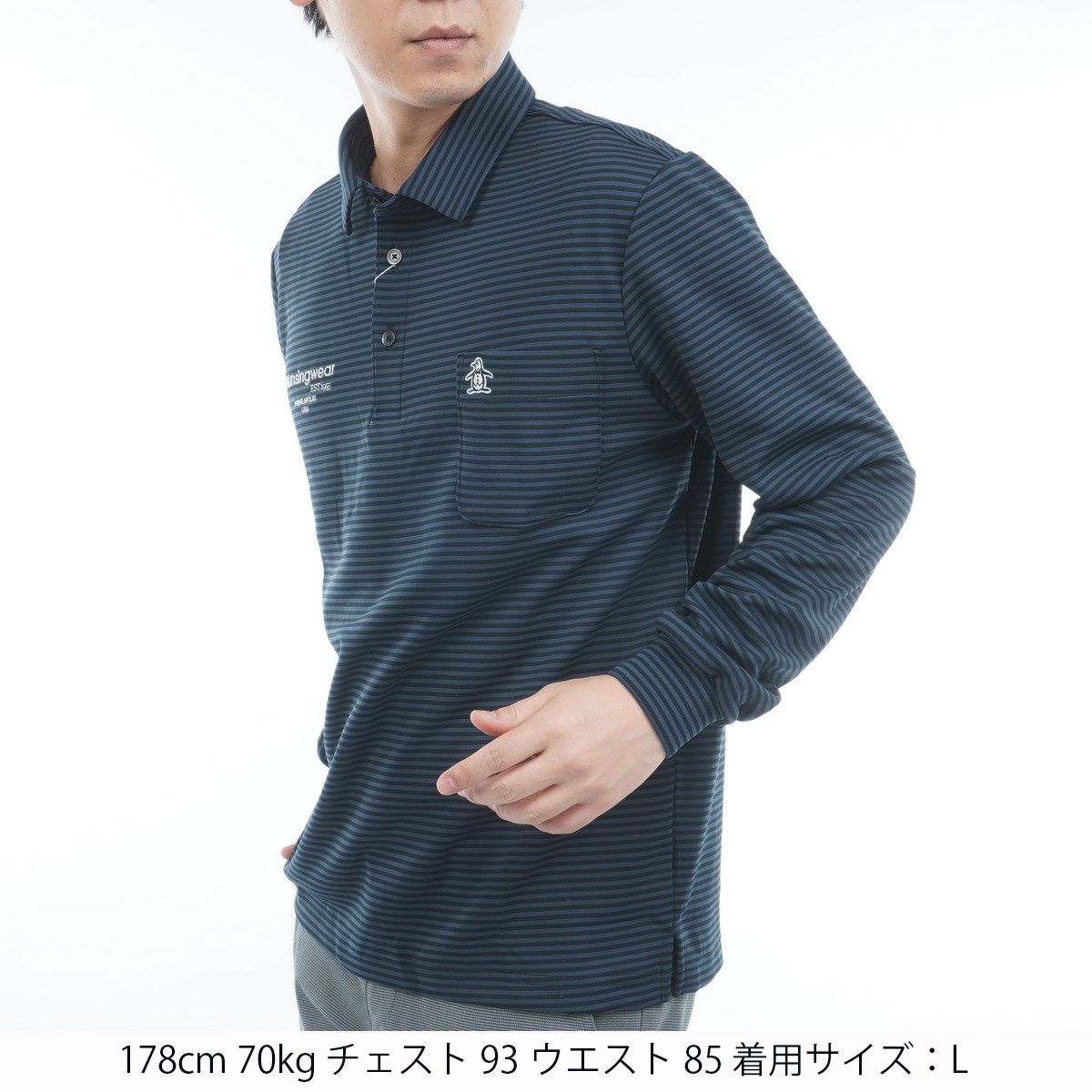 マンシングウェア Munsingwear ストレッチ ボーダー台衿付き長袖ポロシャツ LL ネイビー 01