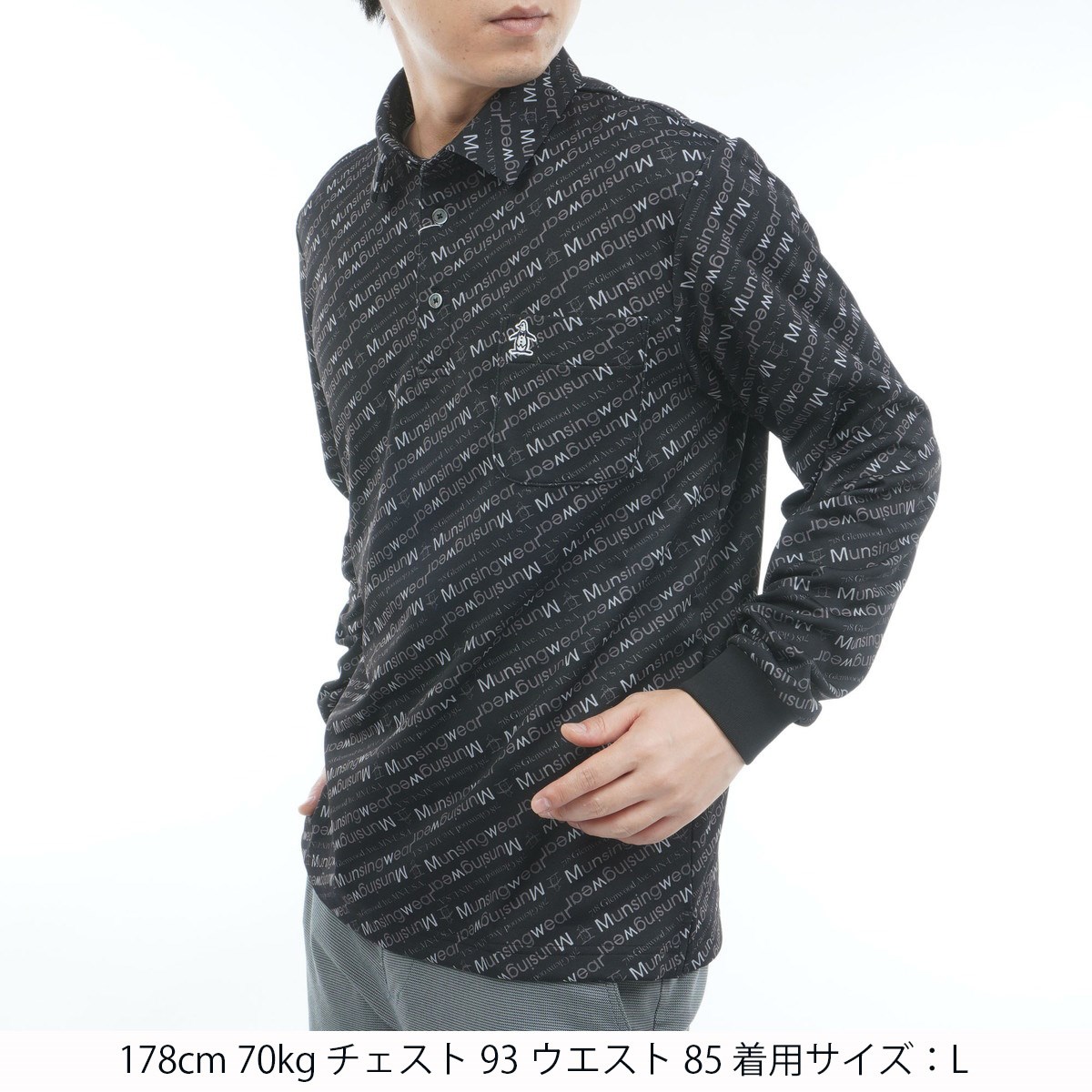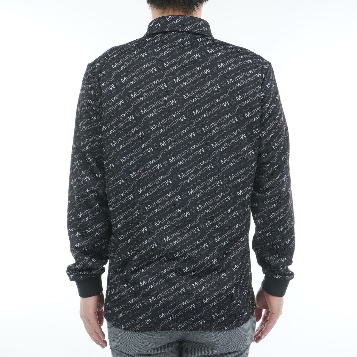 マンシングウェア Munsingwear ストレッチ ロゴ総柄プリント台衿付き長袖ポロシャツ M ブラック 00