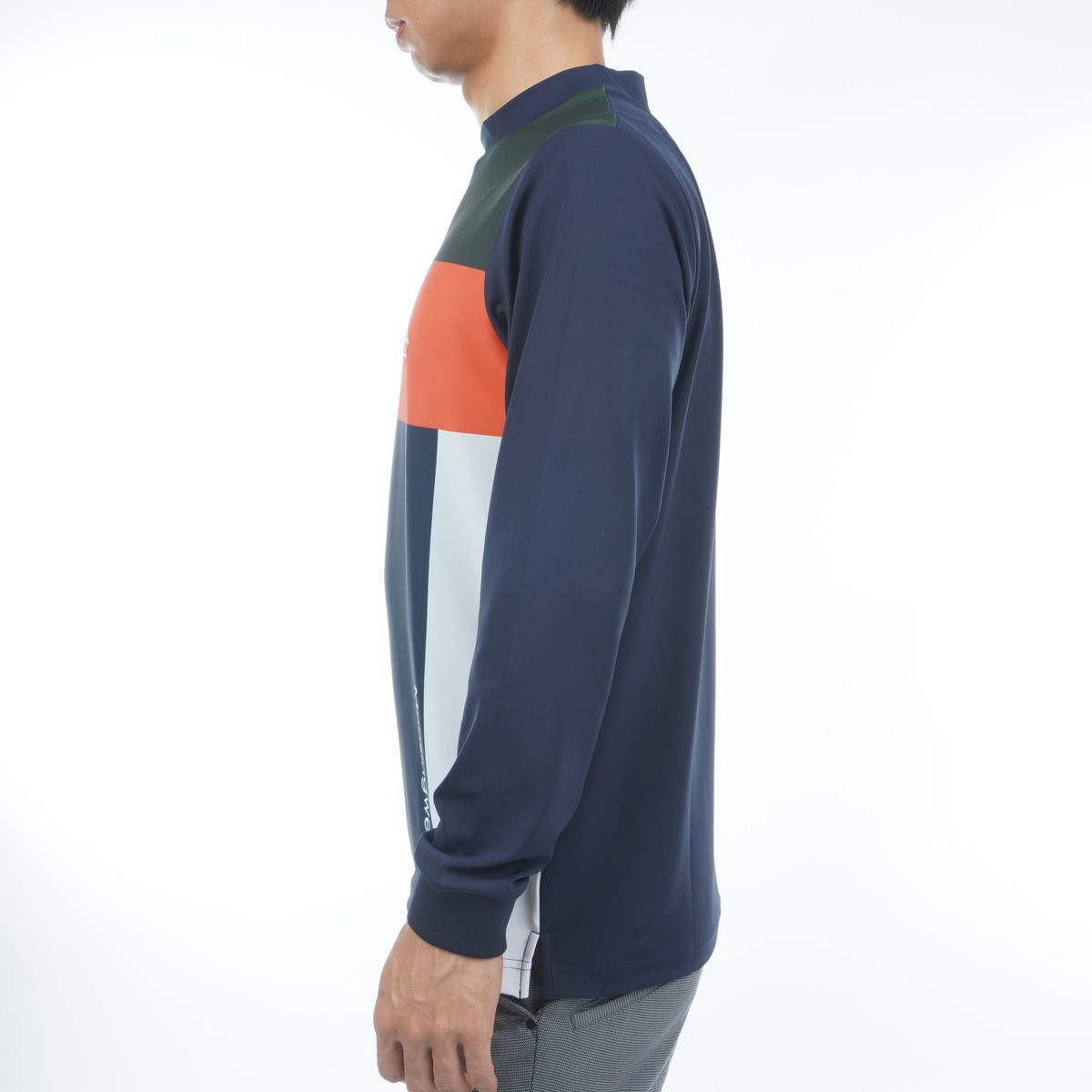 マンシングウェア Munsingwear ストレッチ 裏起毛 ブロッキングプリントモックネック長袖シャツ LL ネイビー 00