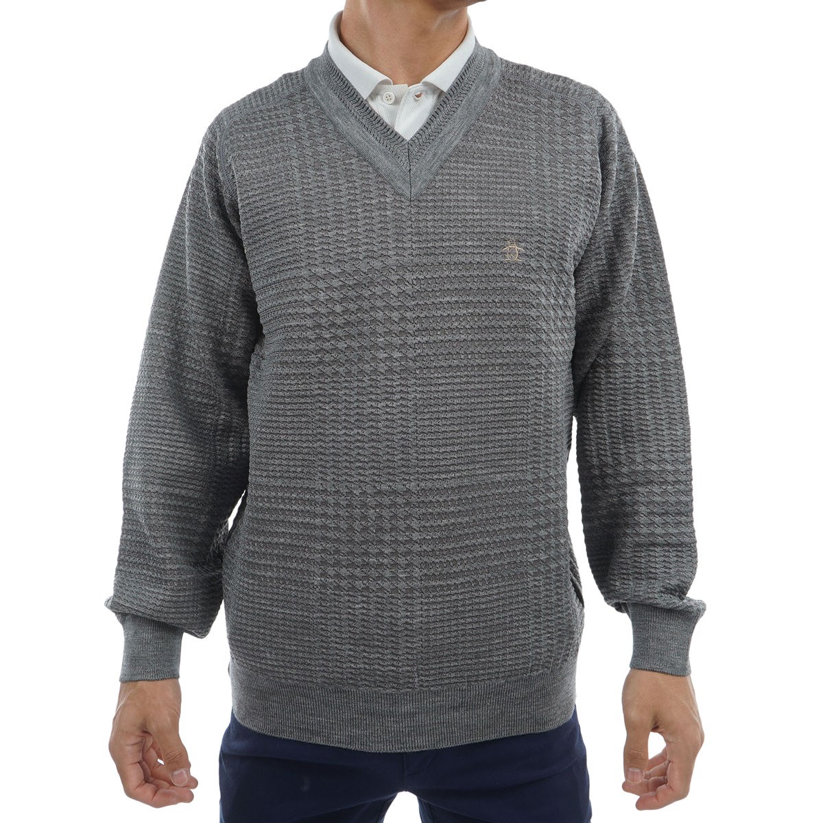 マンシングウェア Munsingwear グレンチェックVネックセーター LL ネイビー 00