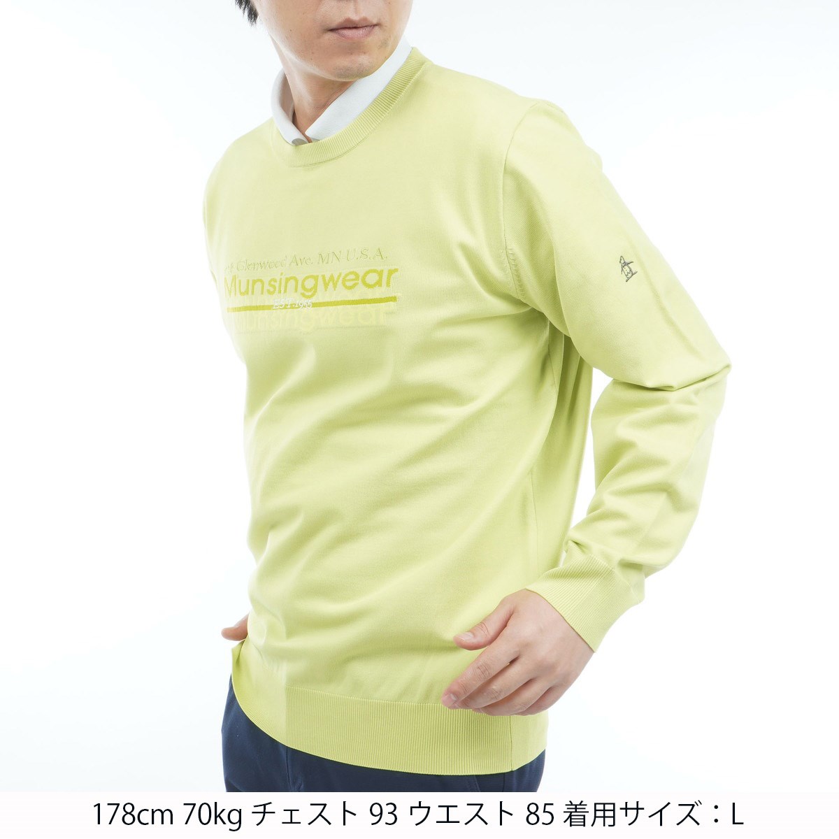マンシングウェア Munsingwear ロゴジャカードクルーネックセーター L ライム 00
