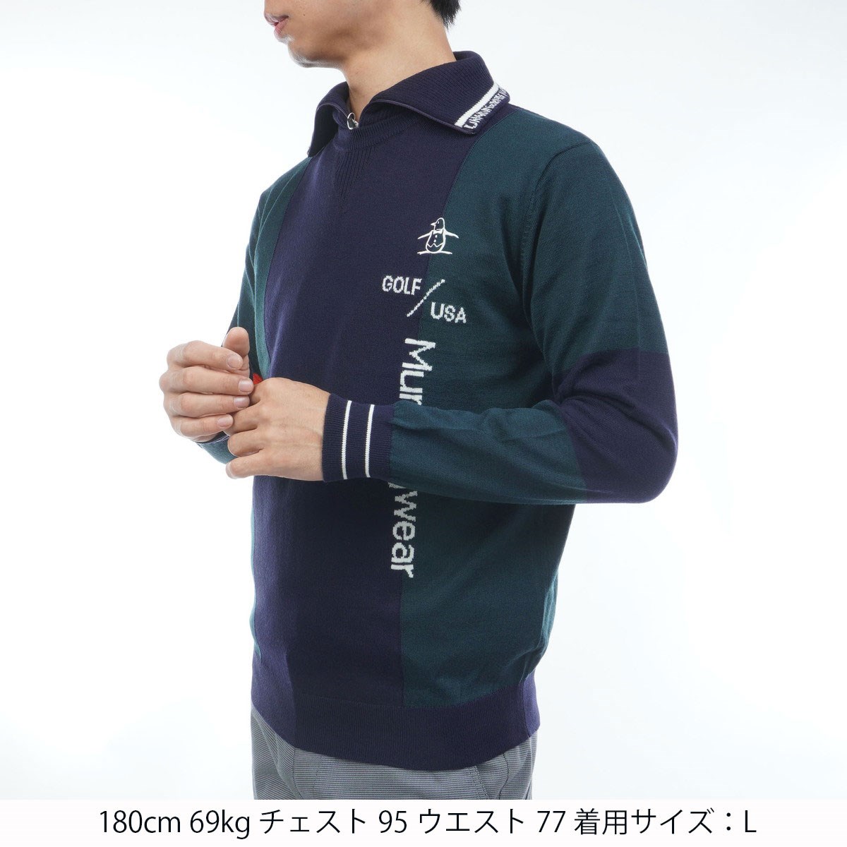 マンシングウェア Munsingwear 2WAY 防風裏地付きクルーネックセーター L ネイビー 00
