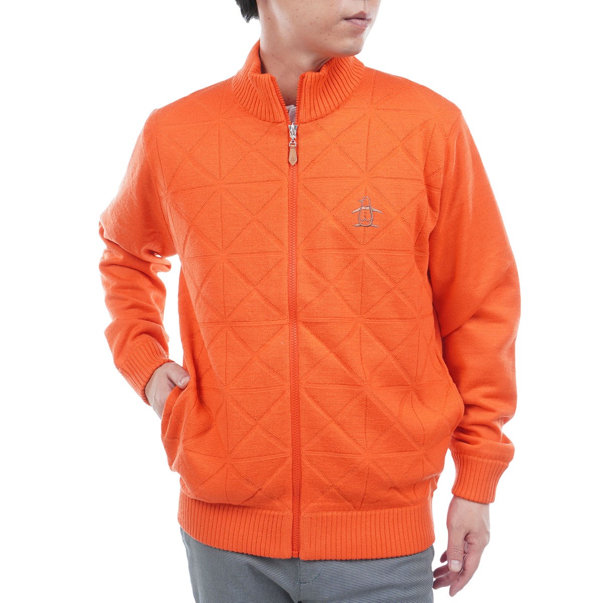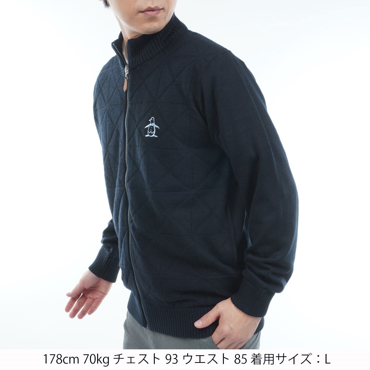 マンシングウェア Munsingwear 裏地付きフルジップ地柄セーター L ネイビー 00