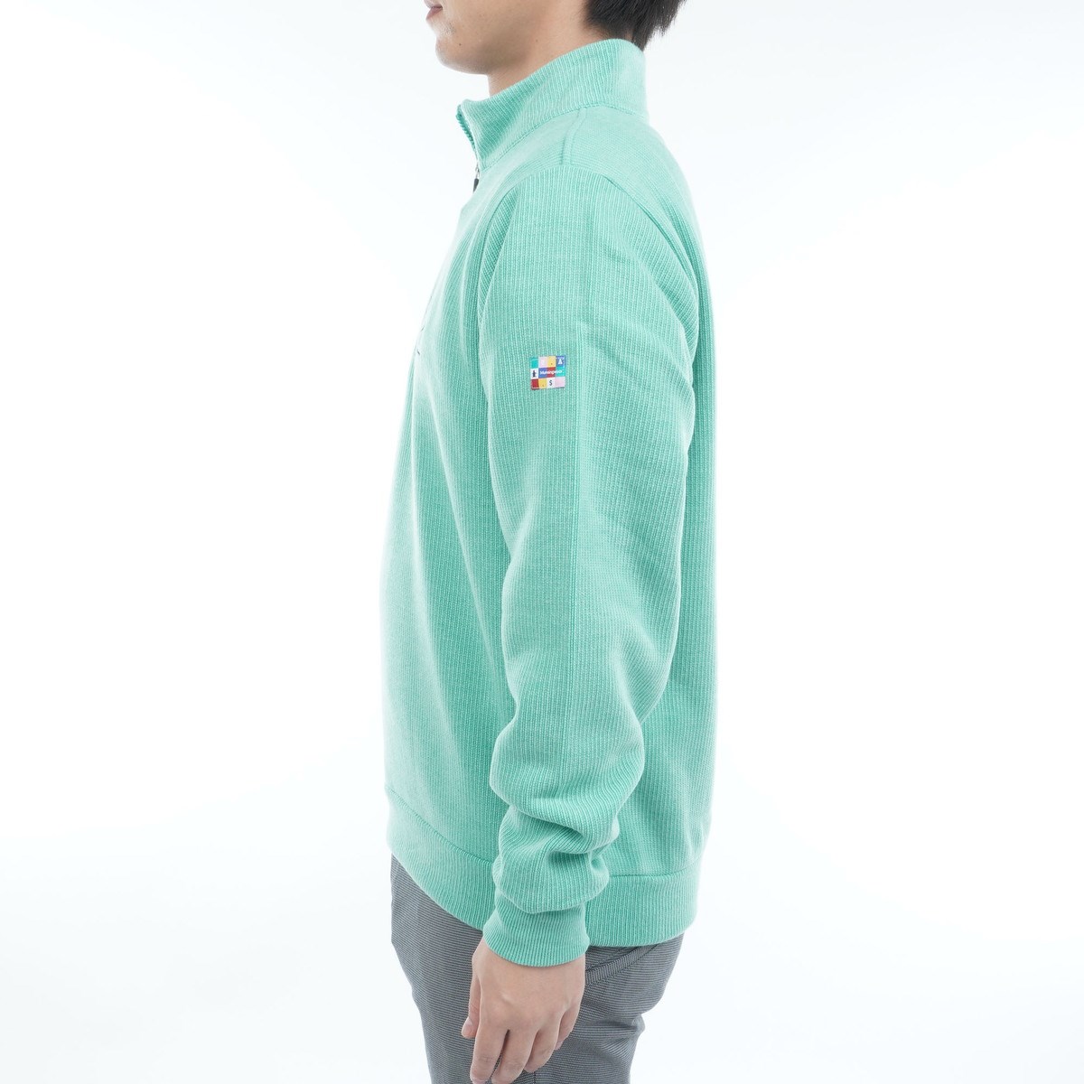 ・吸湿発熱機能を持つニット素材を採用したハーフジップ開きのスタンドカラーミドラーです。