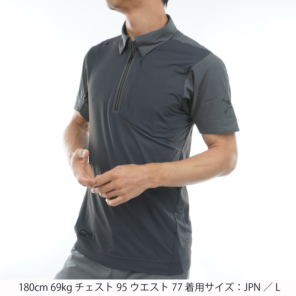 オークリー OAKLEY スカル IDEALLYハイブリッド ジップ半袖ポロシャツ US・EU/XL:JPN/2XL ダーククラウド 2DE FOA408144