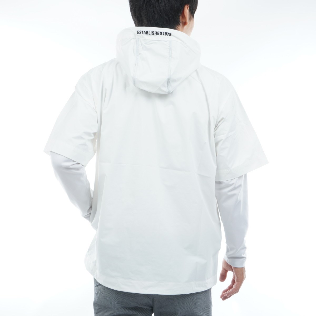 ハリ感を持たせたストレッチリップ素材を採用した半袖プルオーバーフーディージャケット。