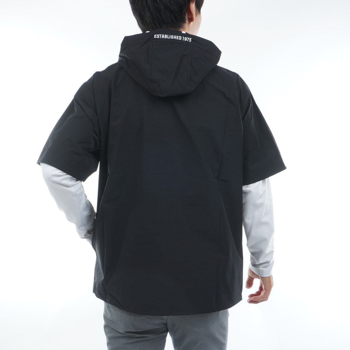 ハリ感を持たせたストレッチリップ素材を採用した半袖プルオーバーフーディージャケット。