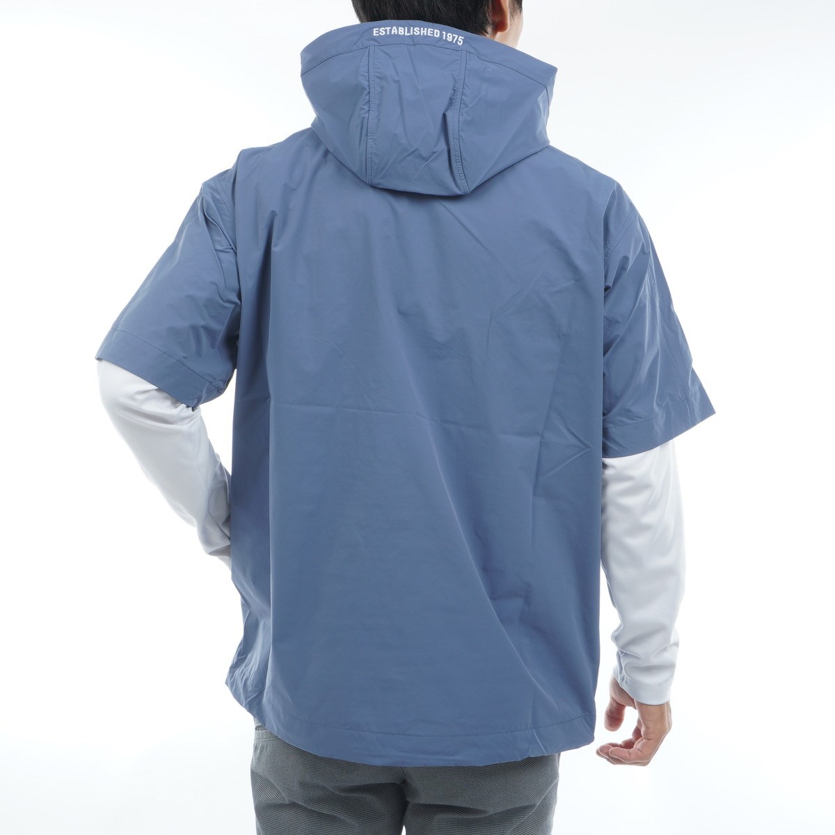 ハリ感を持たせたストレッチリップ素材を採用した半袖プルオーバーフーディージャケット。
