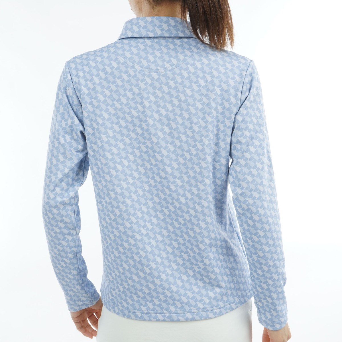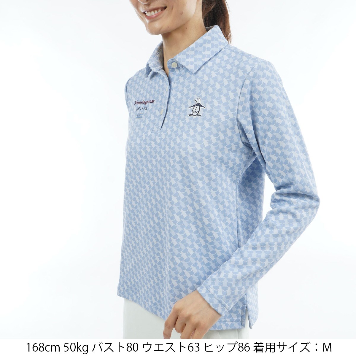 マンシングウェア Munsingwear ストレッチ HEAT NAVI プリントテーラーカラー長袖ポロシャツ L サックス 00 レディス
