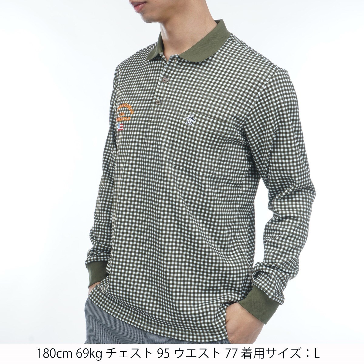マンシングウェア Munsingwear ストレッチ HEAT NAVI ギンガムチェック総柄プリント 長袖ポロシャツ LL カーキ 00