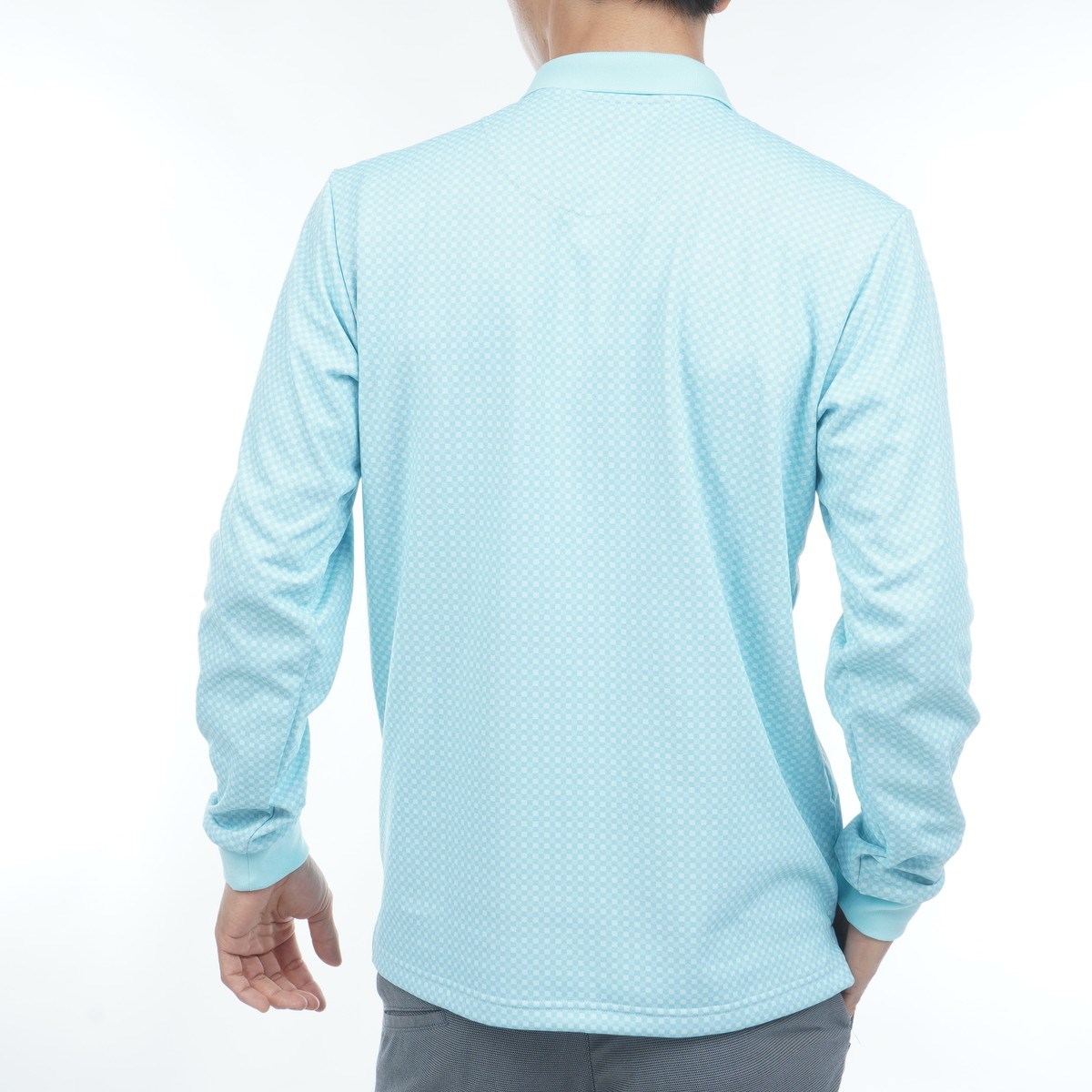 マンシングウェア Munsingwear ストレッチ HEAT NAVI ギンガムチェック総柄プリント 長袖ポロシャツ M サックス 00