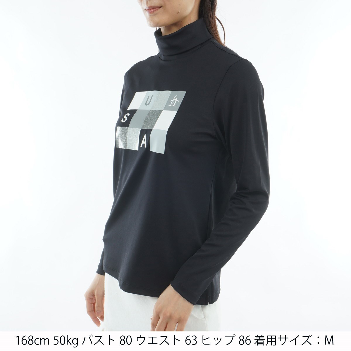 マンシングウェア Munsingwear ストレッチ ラメパネルプリント タートルネック長袖シャツ LL ブラック 00 レディス