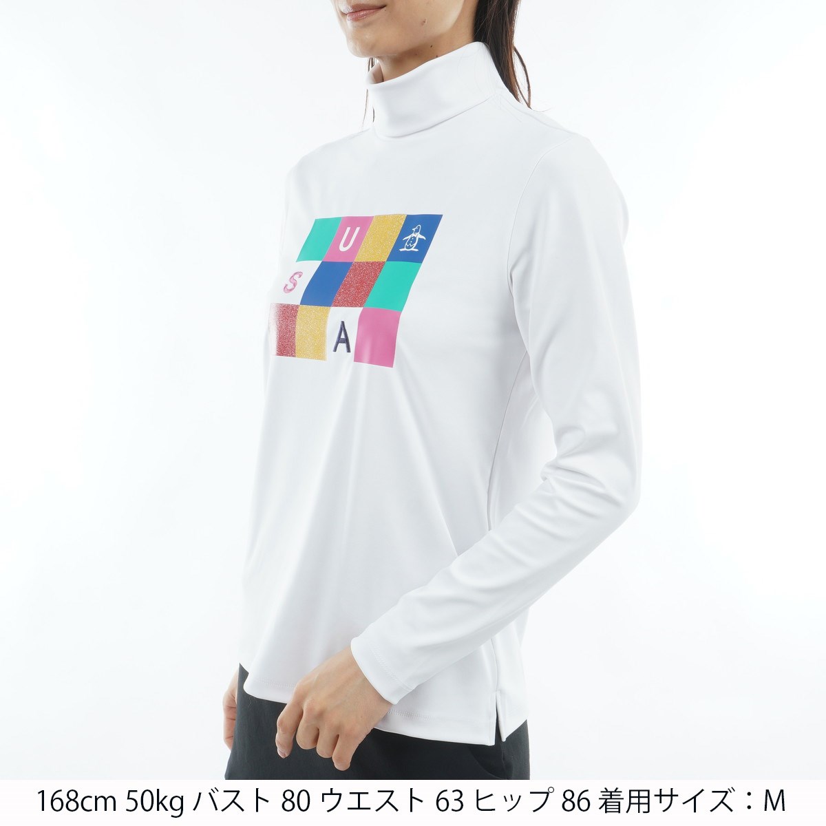 マンシングウェア Munsingwear ストレッチ ラメパネルプリント タートルネック長袖シャツ L ホワイト 00 レディス