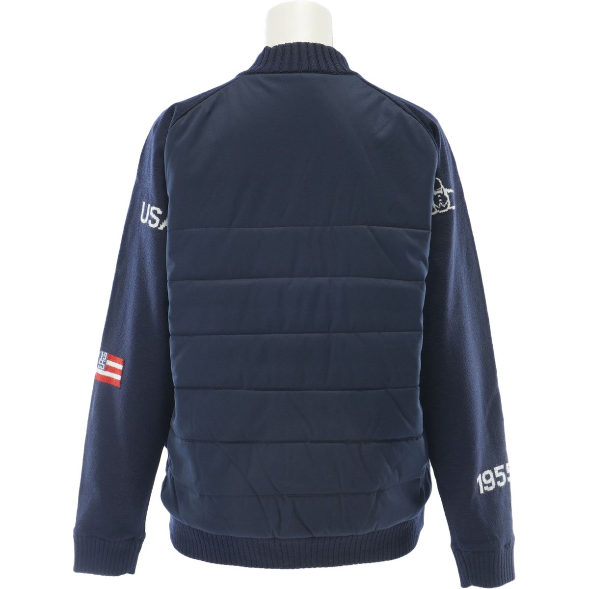・ニットと布帛素材を組み合わせることで、スイングの動きを妨げない柔軟性と、冷たい風から身体を守る防風性を両立させています。