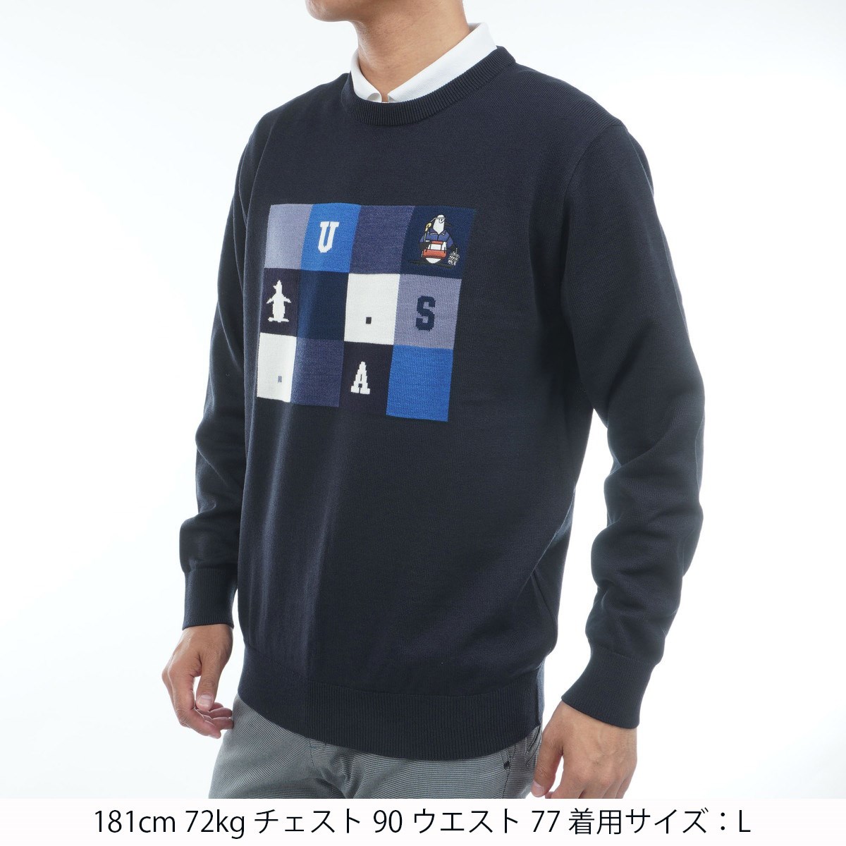 マンシングウェア Munsingwear ブロッキングインターシャ クルーネックセーター L ネイビー 00