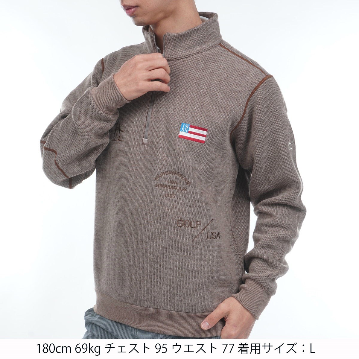 マンシングウェア Munsingwear 飛び刺繍 ハーフジップミドラー M ブラウン 00