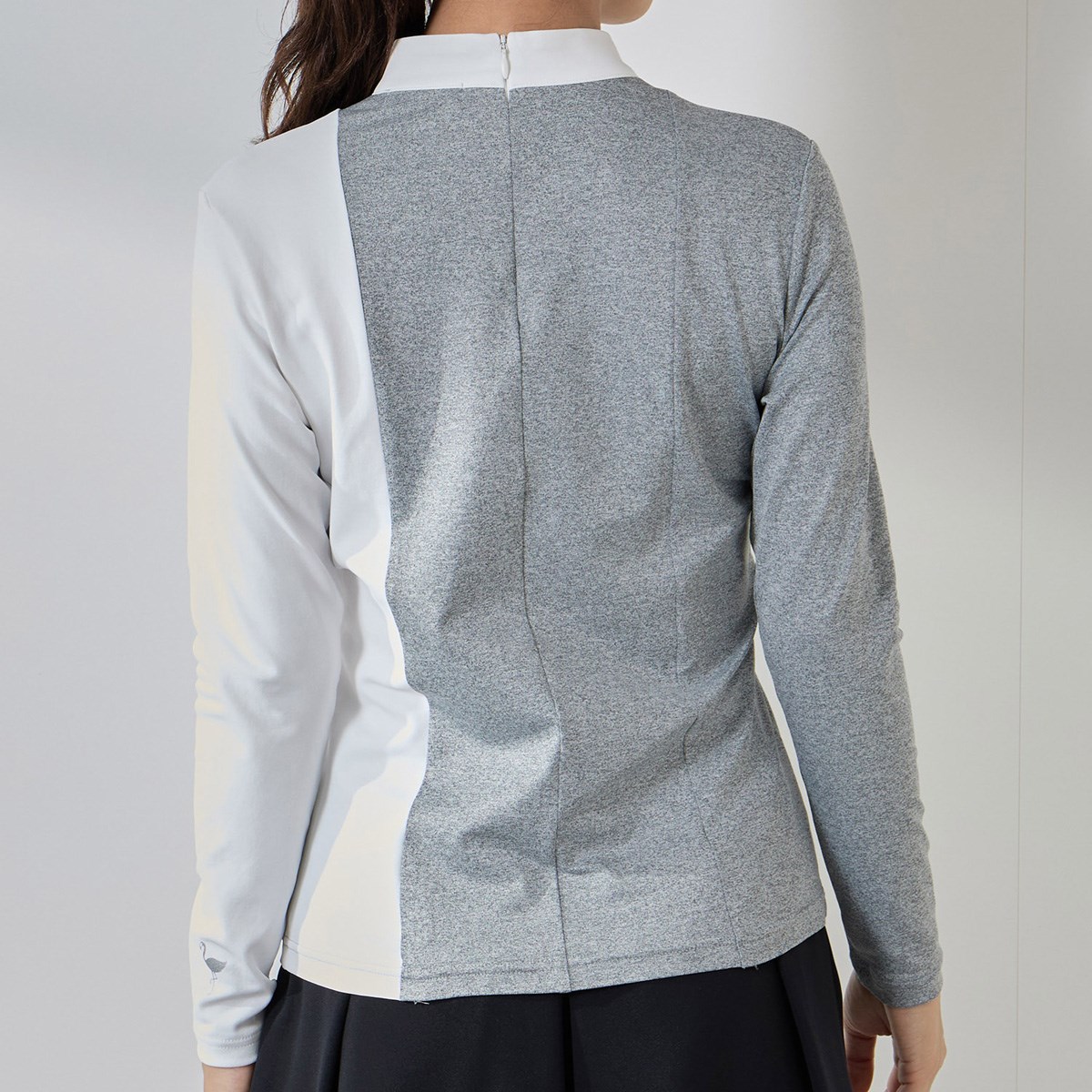 縦の配色切替ラインがシャープな印象を与える、モックネック長袖プルオーバー。