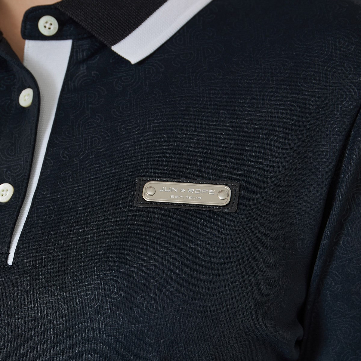 ジュン アンド ロペ JUN & ROPE モノグラム柄プリント長袖ポロシャツ L ブラック 01 レディス