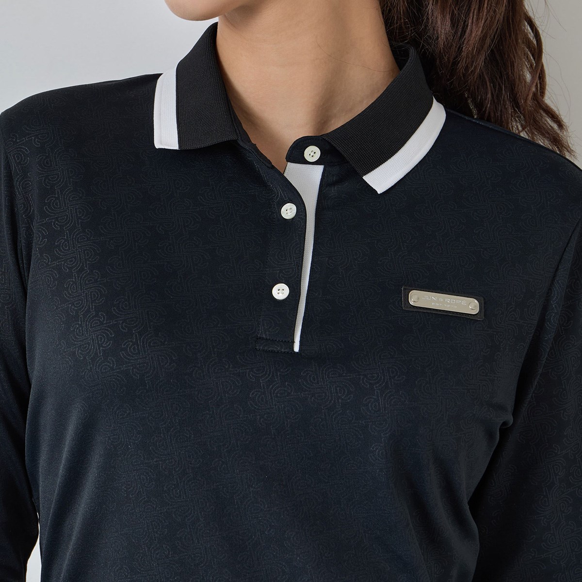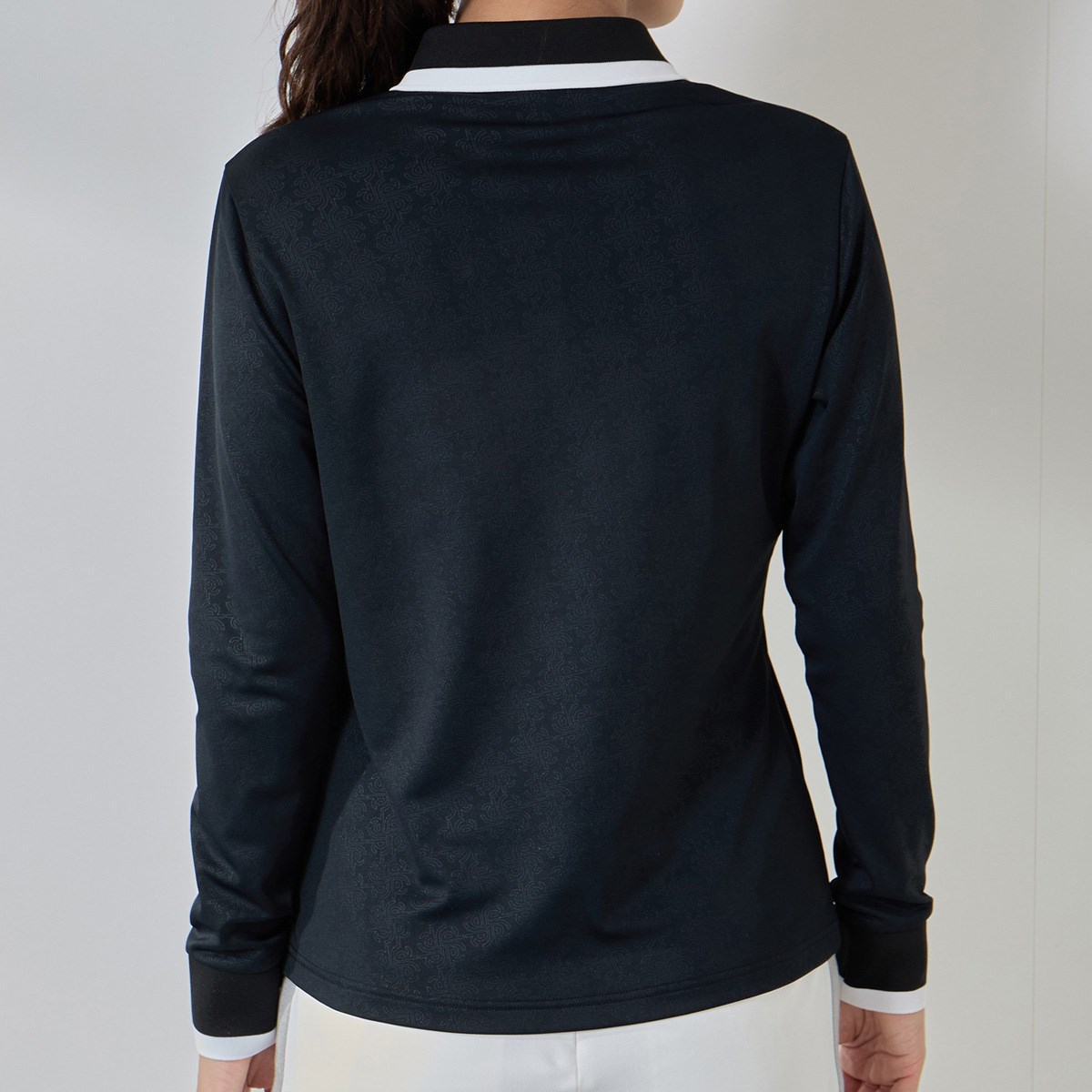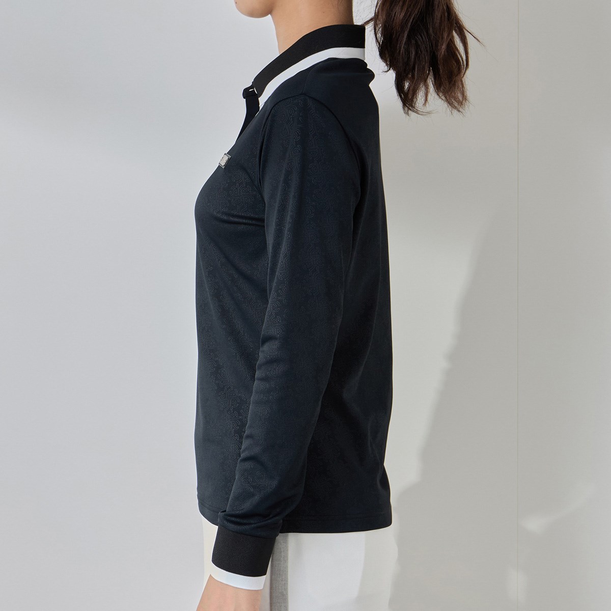 衿と袖口に編み立てを施し、上品な長袖ポロシャツ。
