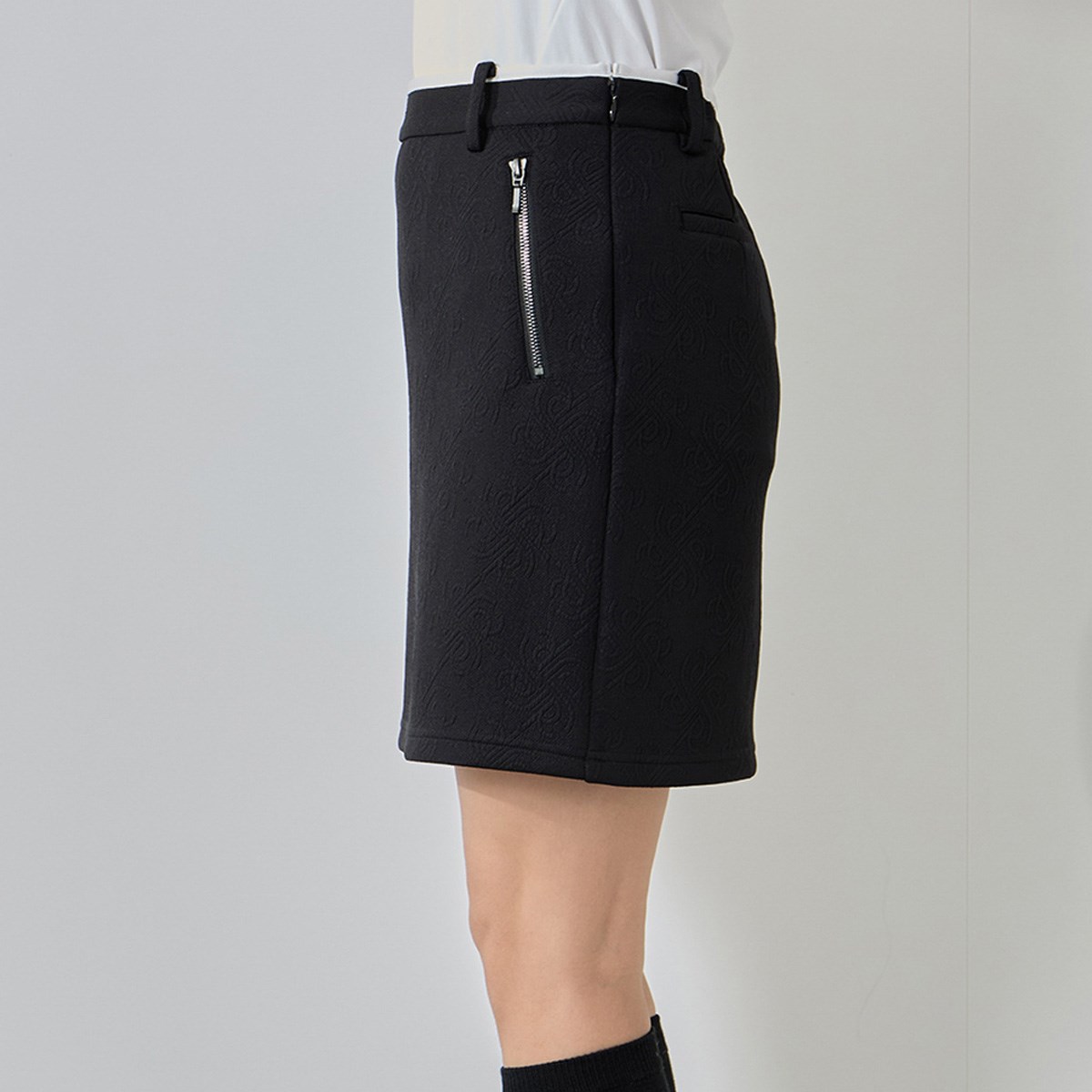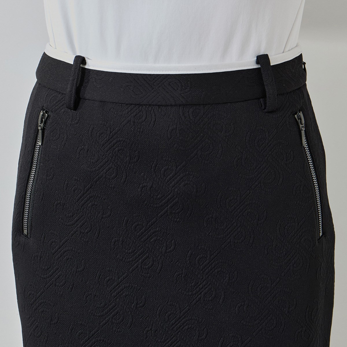 ジュン アンド ロペ JUN & ROPE ロゴキルト風 ジャカード ファスナー付きスカート L ブラック 01 レディス