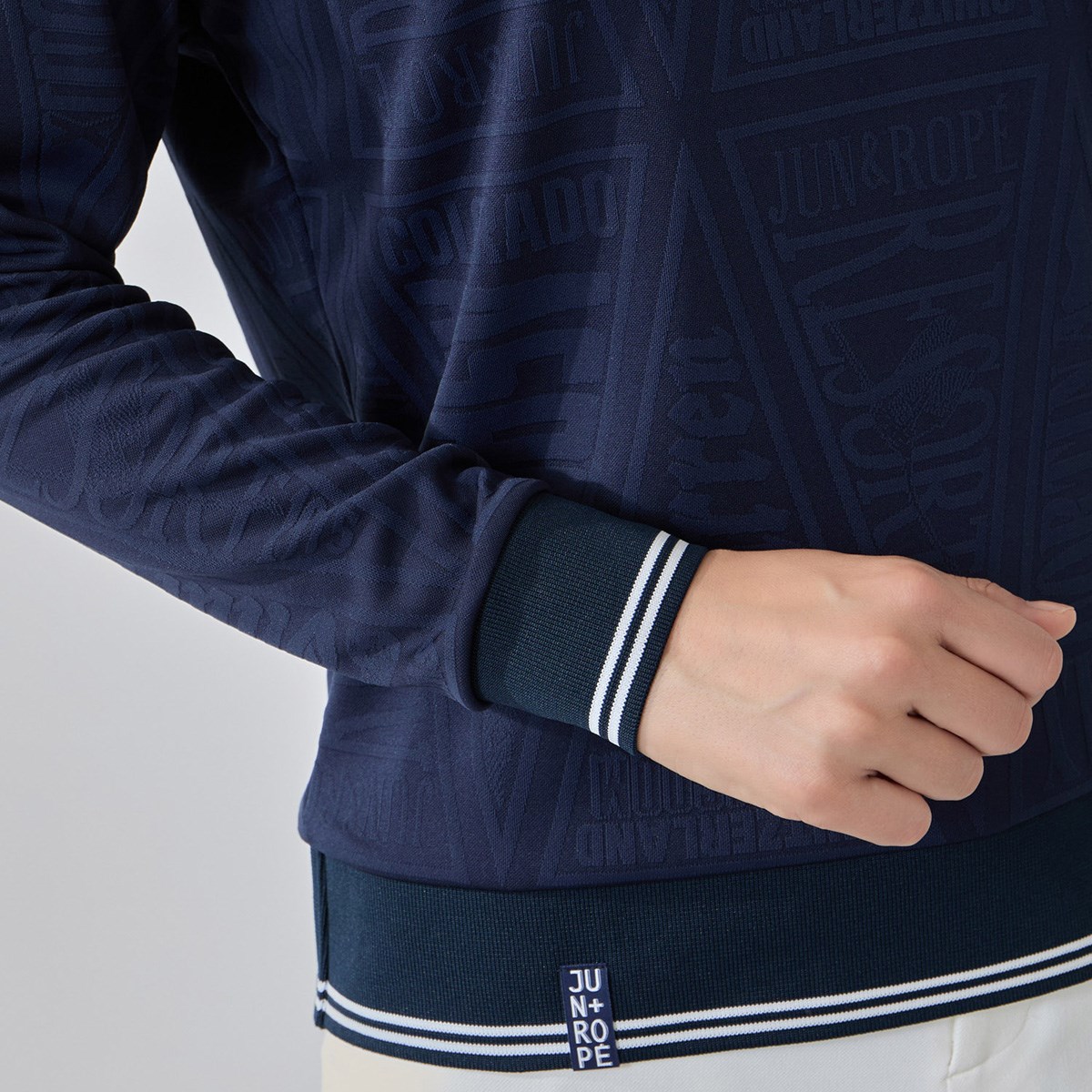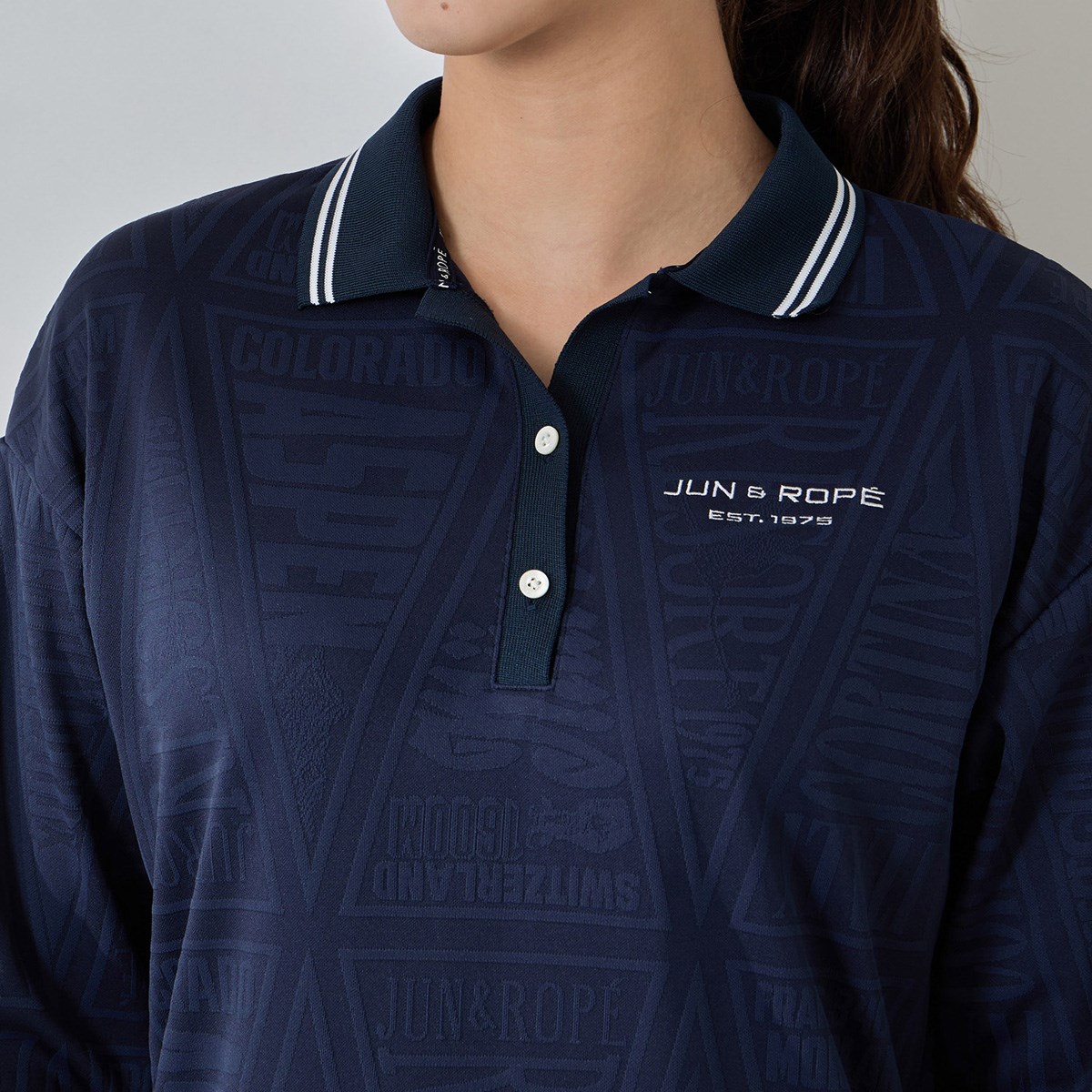 ジュン アンド ロペ JUN & ROPE ペナント柄 ジャカード長袖ポロシャツ M ネイビー 40 レディス