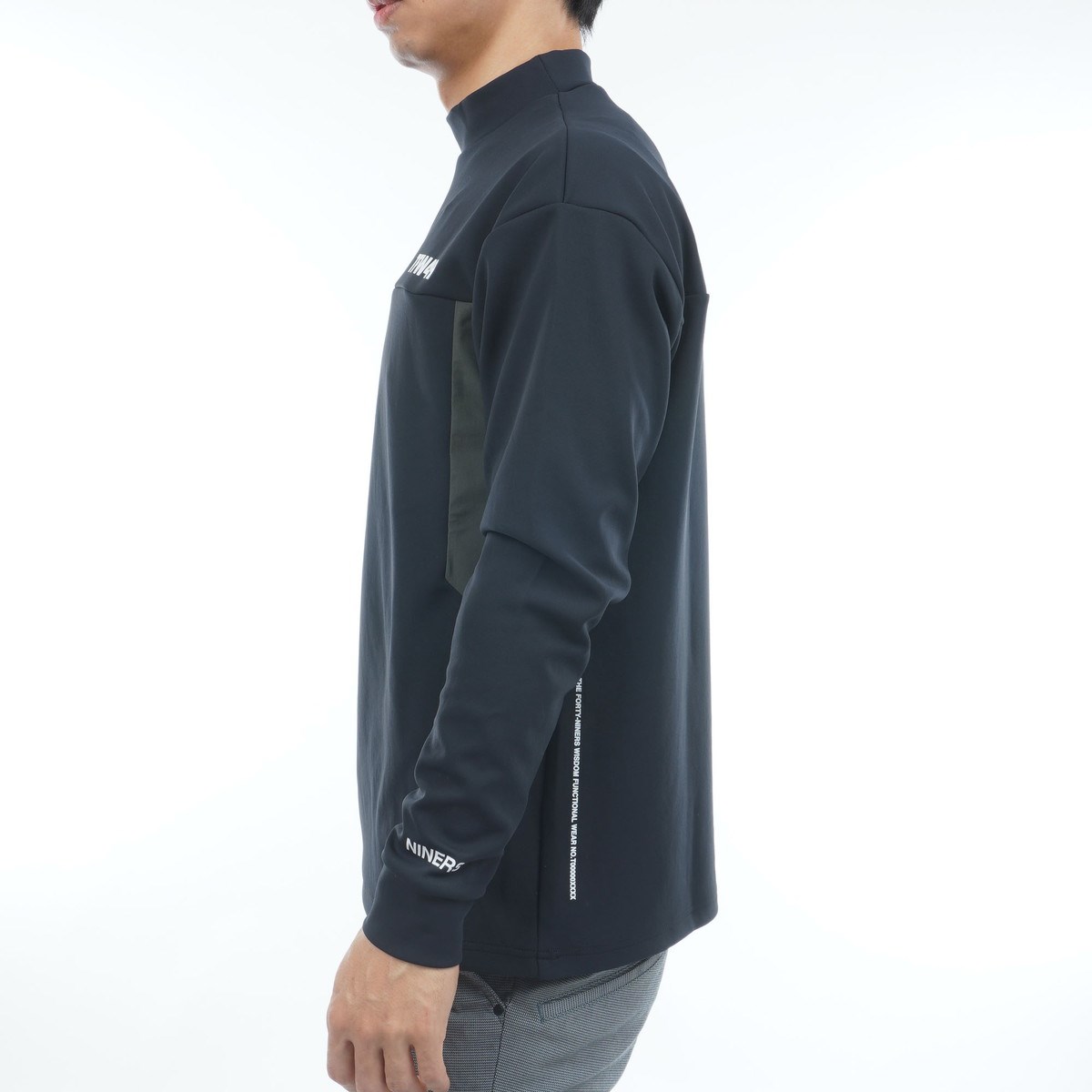2つの素材を組み合わせたモックネック長袖シャツ。
