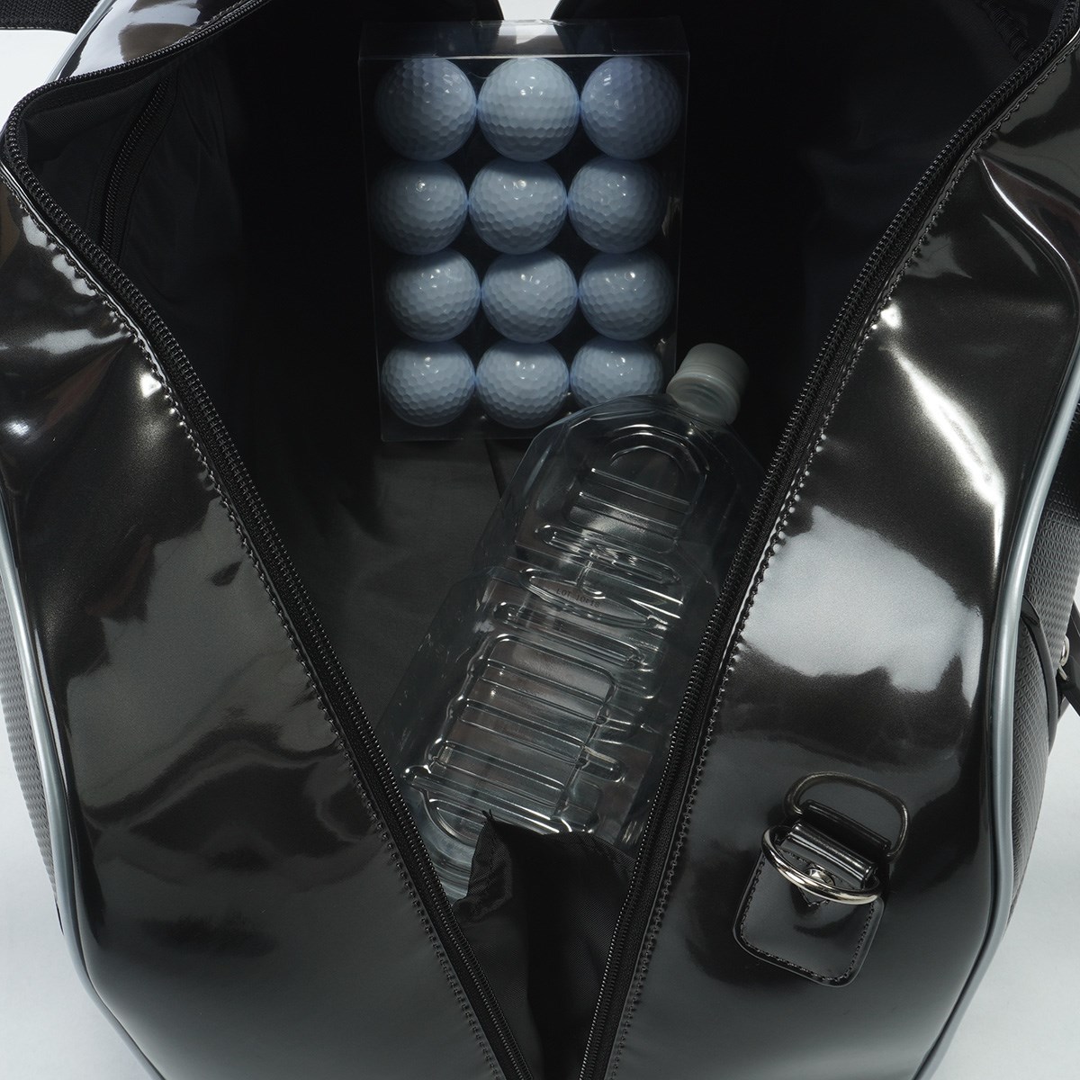エナメル生地と表面がリズミックパターンの合皮を使用。