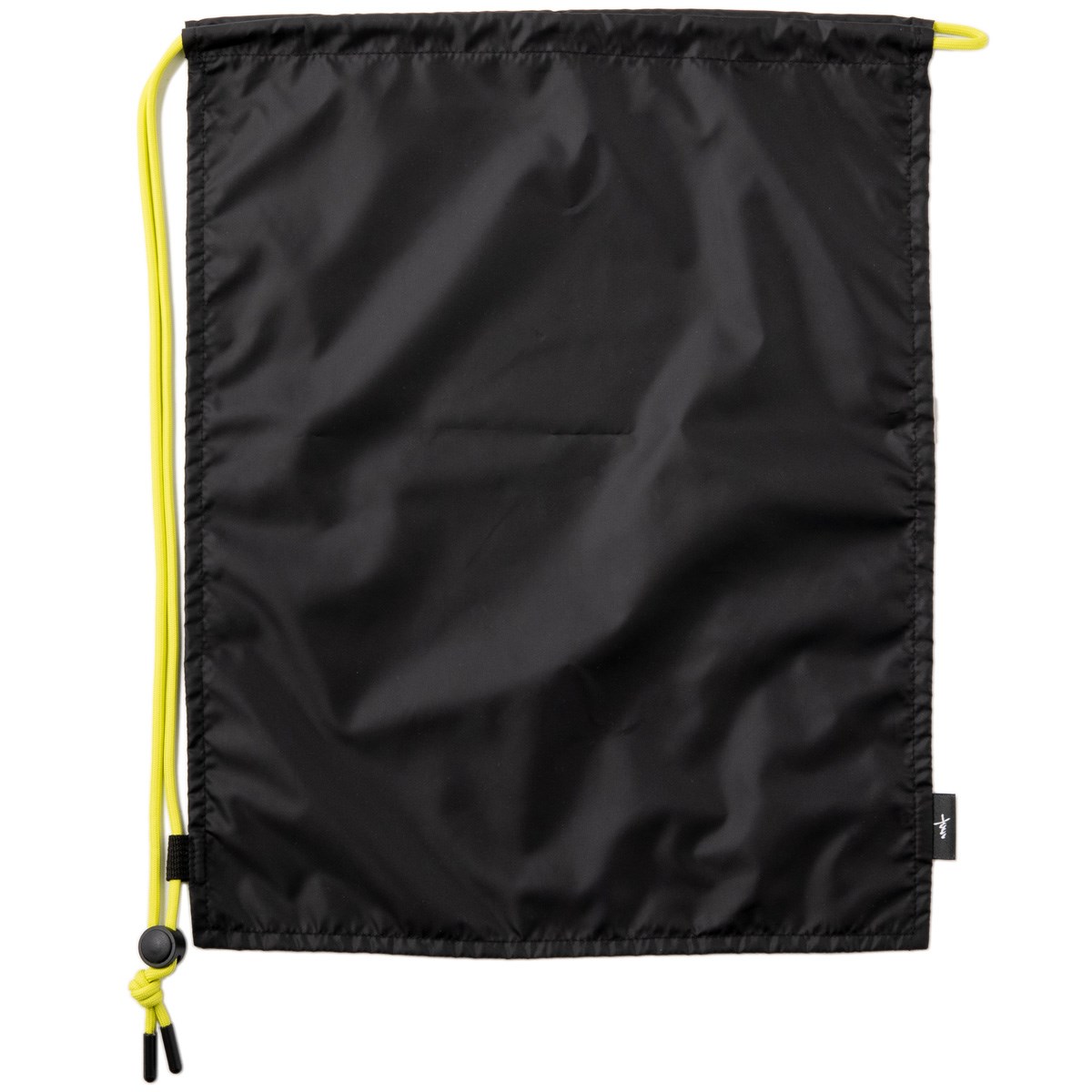 ブラックベースの本体にイエローのロゴと紐を使用したシンプルなデザイン。