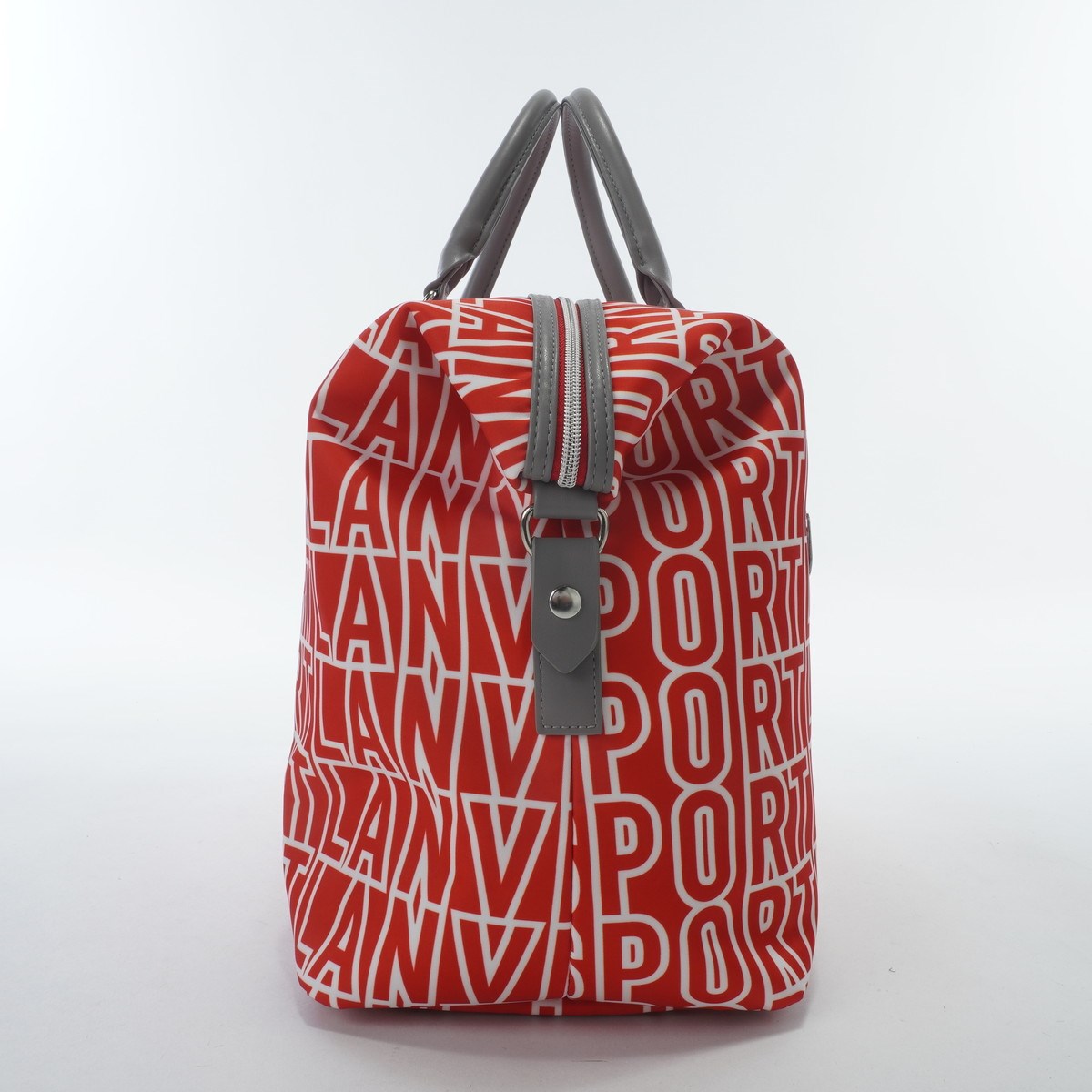 本体にプリントのポリエステル素材を採用し、部分的に合成皮革を使用。