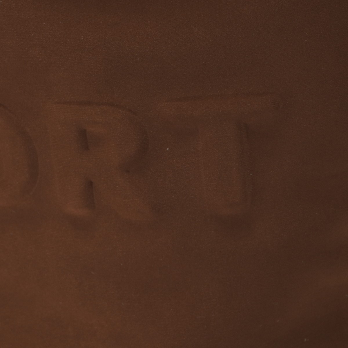 ブランドロゴは盛り上がりのある凸エンボスで表現され、立体的なアクセントとして上品な印象を与えます。