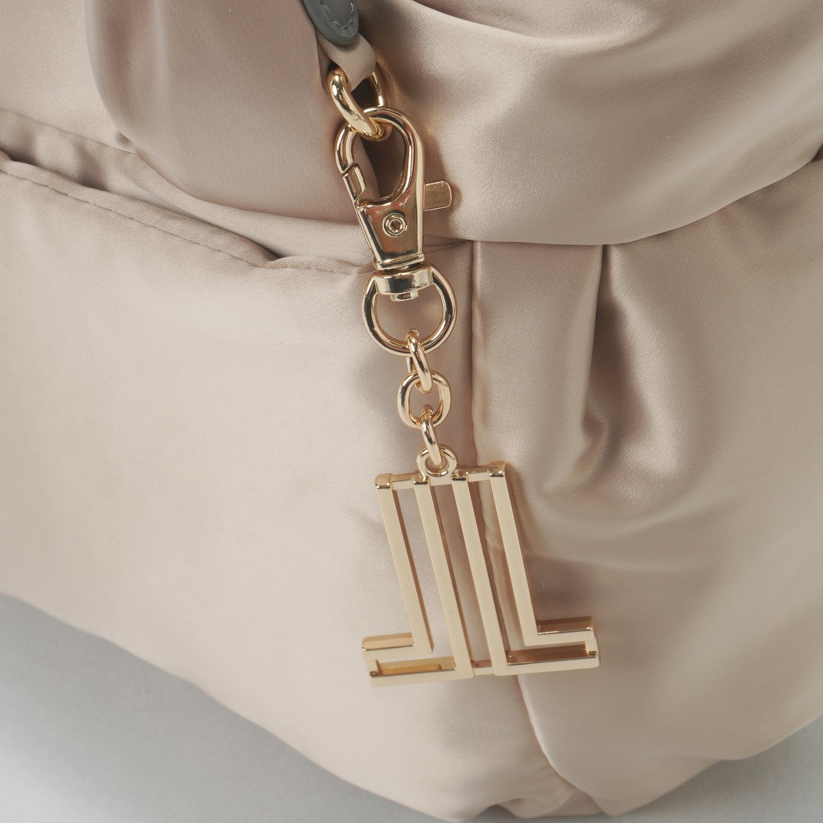 大きめのダブルJLロゴチャームが華やかなアクセントとなり、取り外しも可能です。