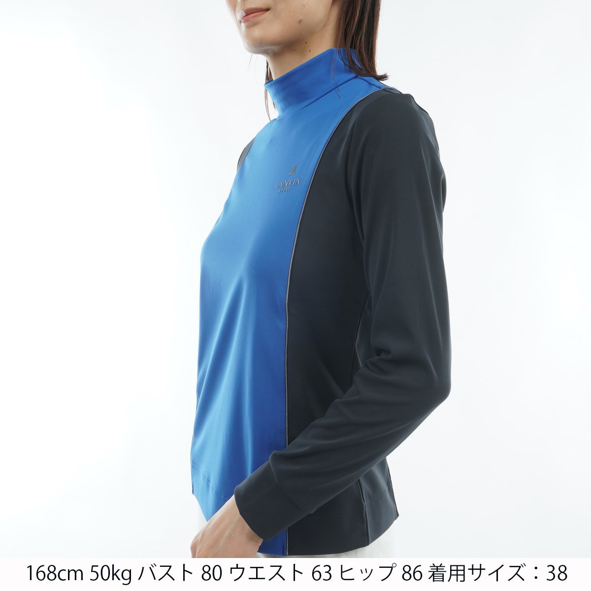 ランバン スポール LANVIN SPORT ストレッチ ブロッキングモックネック長袖シャツ 38 ブルー 03 レディス