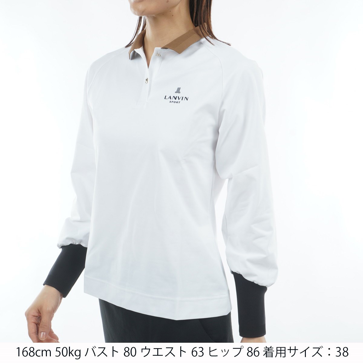 ランバン スポール LANVIN SPORT メッシュリブ襟長袖ポロシャツ 40 ホワイト 01 レディス