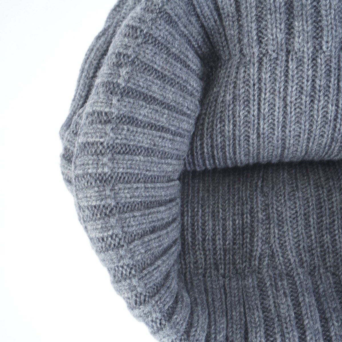 ロゴは凹凸をつけた編み地正面に今季のグラフィックロゴを刺繍。