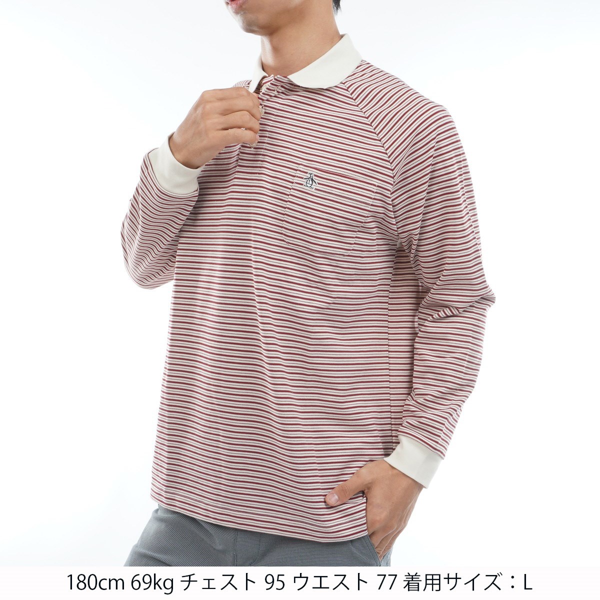 ペンギン バイ マンシングウェア Penguin by Munsingwear 60’ S ラグランスリーブボーダー 長袖ポロシャツ M レッド 00