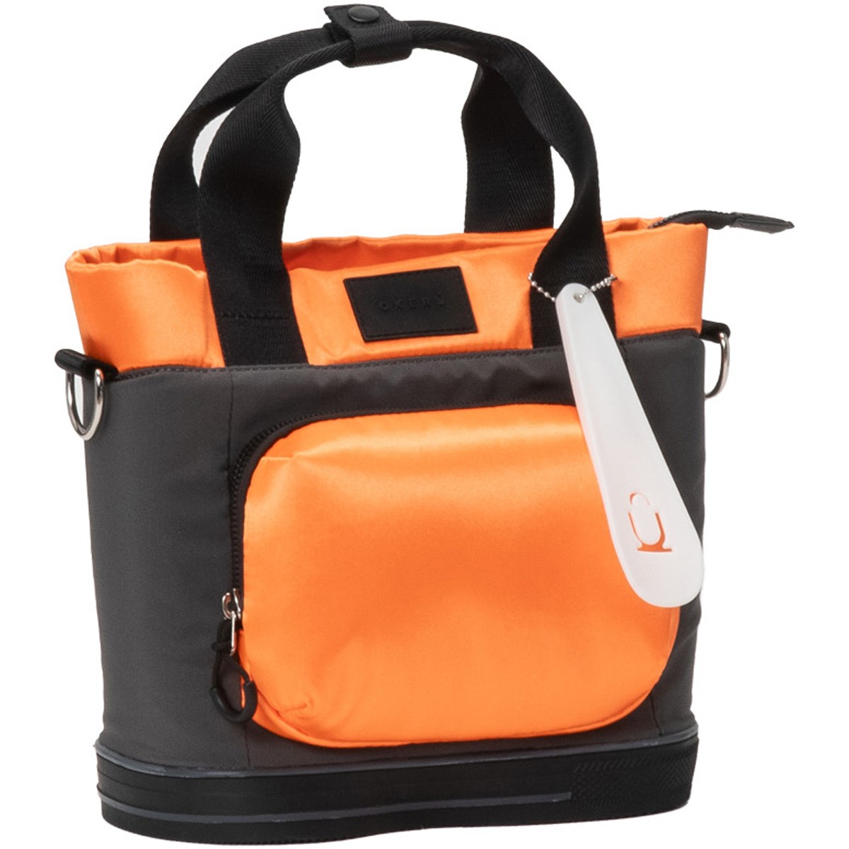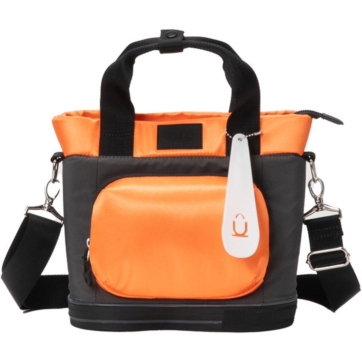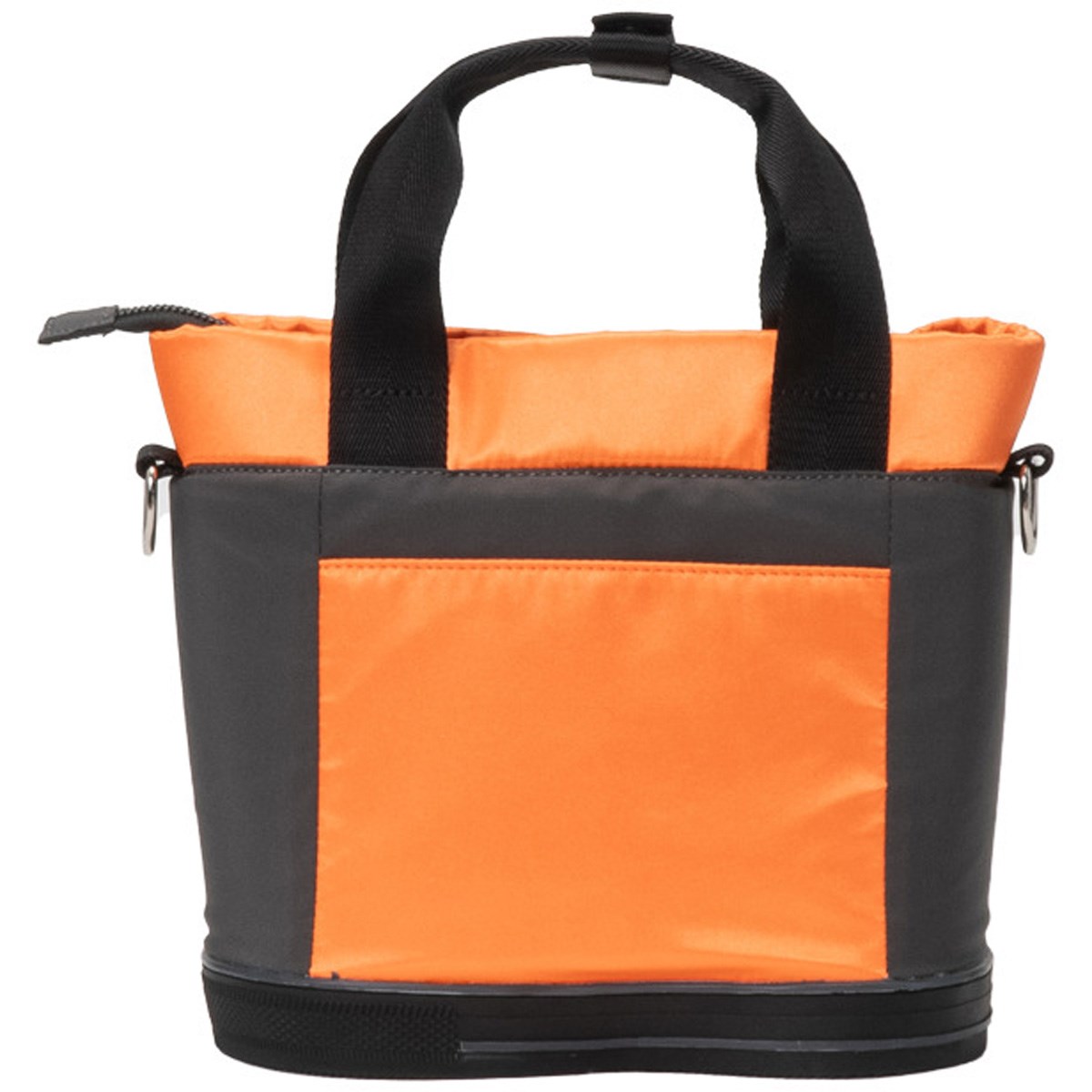 光沢のあるツイル素材を使用した、使い勝手の良い収納上手な「置ける」ラウンドトートバッグ。