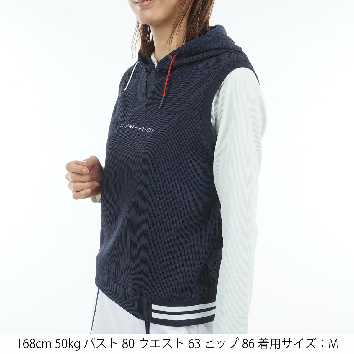トミー ヒルフィガー ゴルフ TOMMY HILFIGER GOLF ストレッチ ワッフル スウェットフーディーベスト S ネイビー レディス