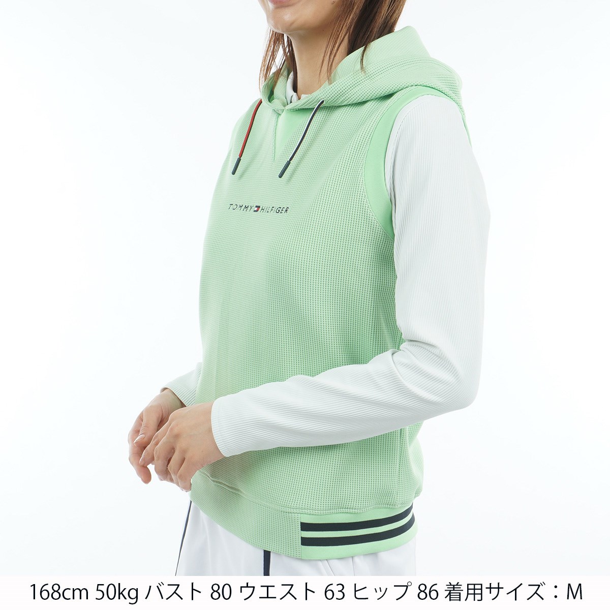 トミー ヒルフィガー ゴルフ TOMMY HILFIGER GOLF ストレッチ ワッフル スウェットフーディーベスト M ライトグリーン レディス