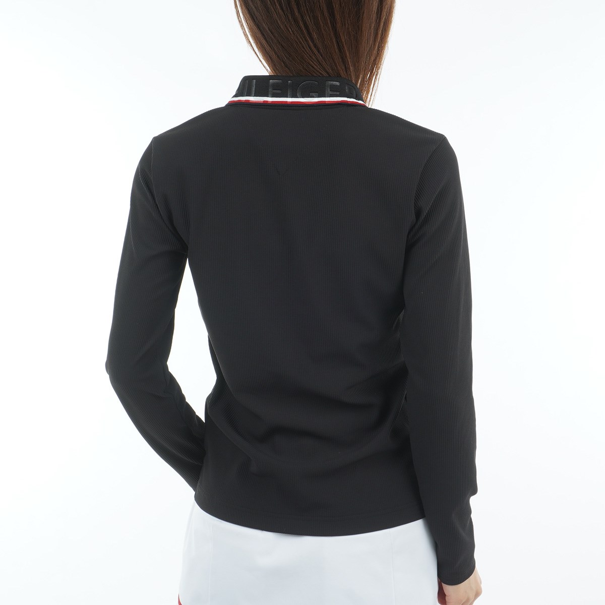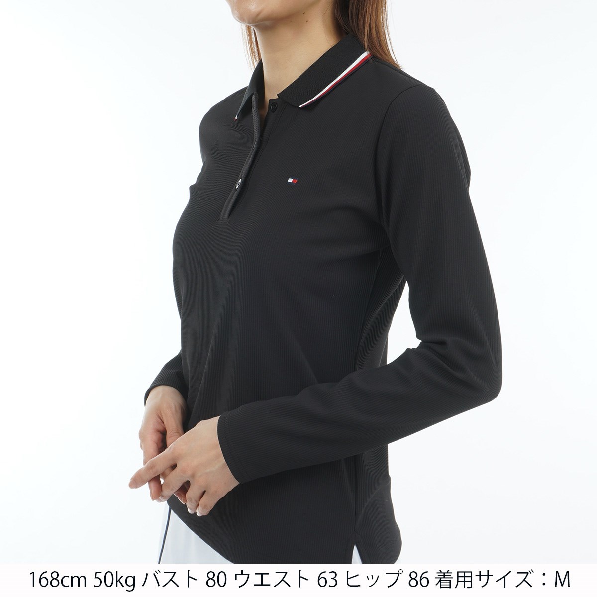 トミー ヒルフィガー ゴルフ TOMMY HILFIGER GOLF ストレッチ ハイテンション 長袖ポロシャツ L ブラック レディス