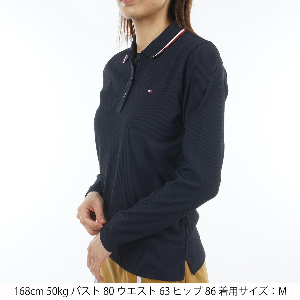 トミー ヒルフィガー ゴルフ TOMMY HILFIGER GOLF ストレッチ ハイテンション 長袖ポロシャツ L ネイビー レディス