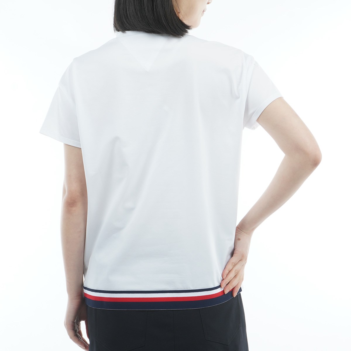 トミー ヒルフィガー ゴルフ TOMMY HILFIGER GOLF ストレッチ エンボスロゴ モックネック半袖シャツ M ホワイト レディス