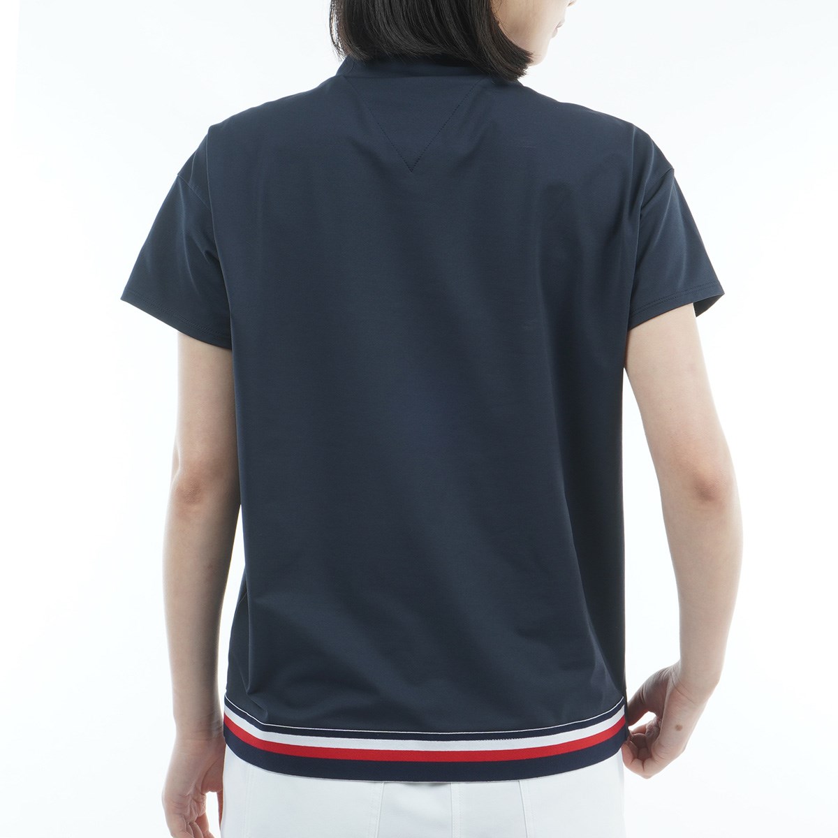 トミー ヒルフィガー ゴルフ TOMMY HILFIGER GOLF ストレッチ エンボスロゴ モックネック半袖シャツ S ネイビー レディス