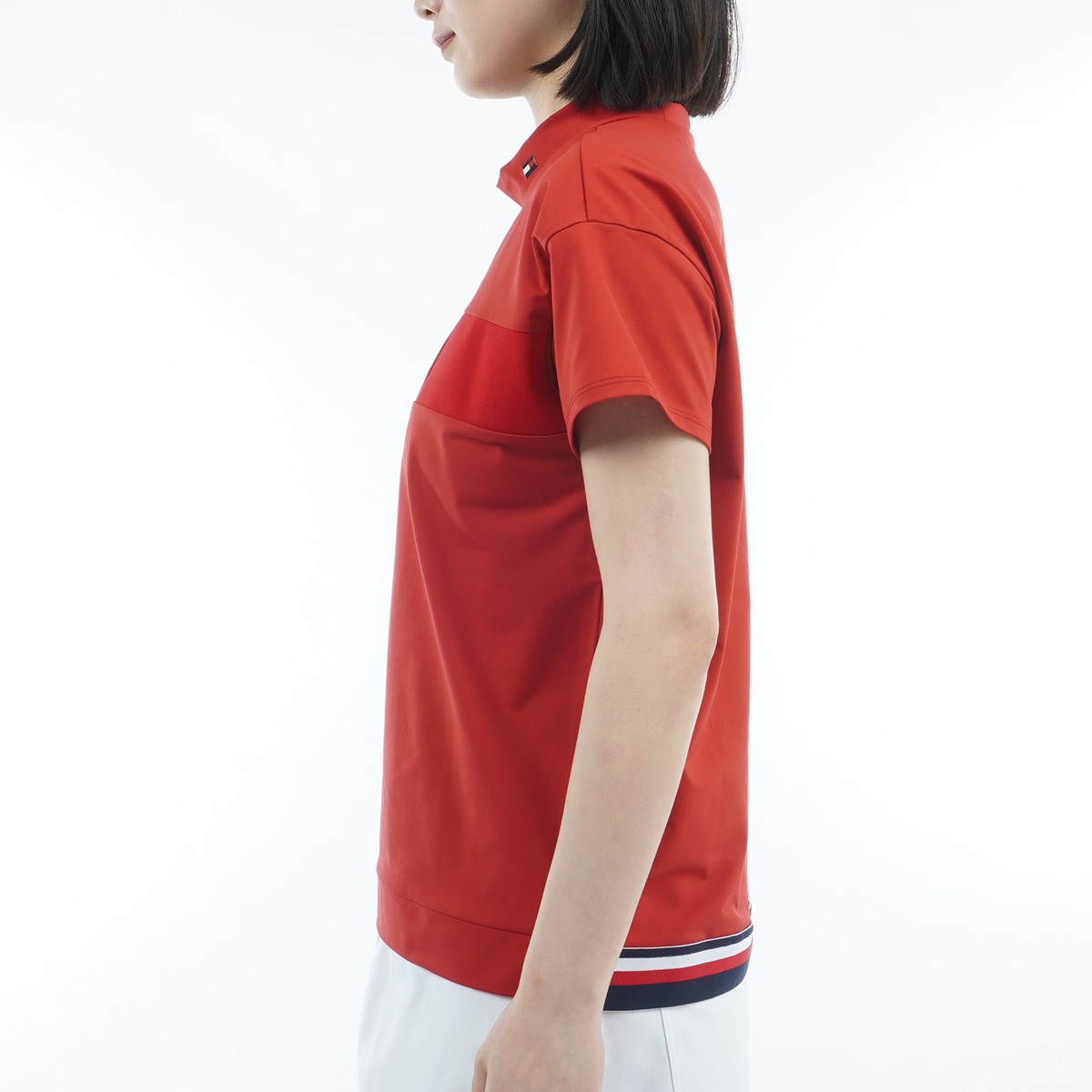 トミー ヒルフィガー ゴルフ TOMMY HILFIGER GOLF ストレッチ エンボスロゴ モックネック半袖シャツ LL レッド レディス