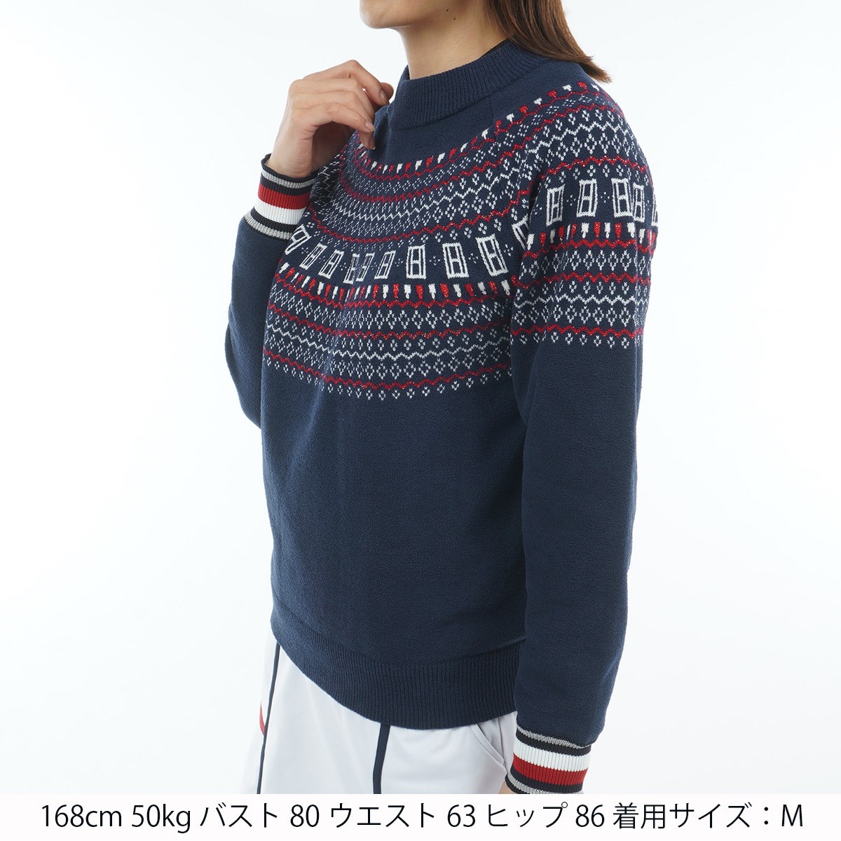 トミー ヒルフィガー ゴルフ TOMMY HILFIGER GOLF フェアアイル柄 ハイネックセーター LL ネイビー レディス
